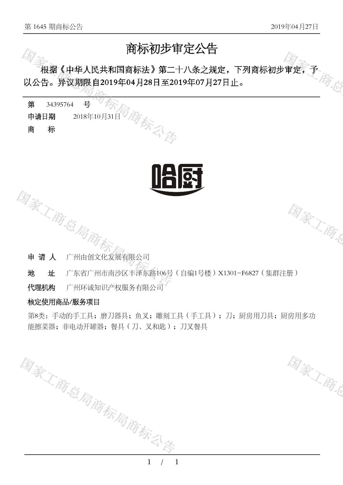 有效期限:2029-07-27 组合类型:中文注册号:34395764