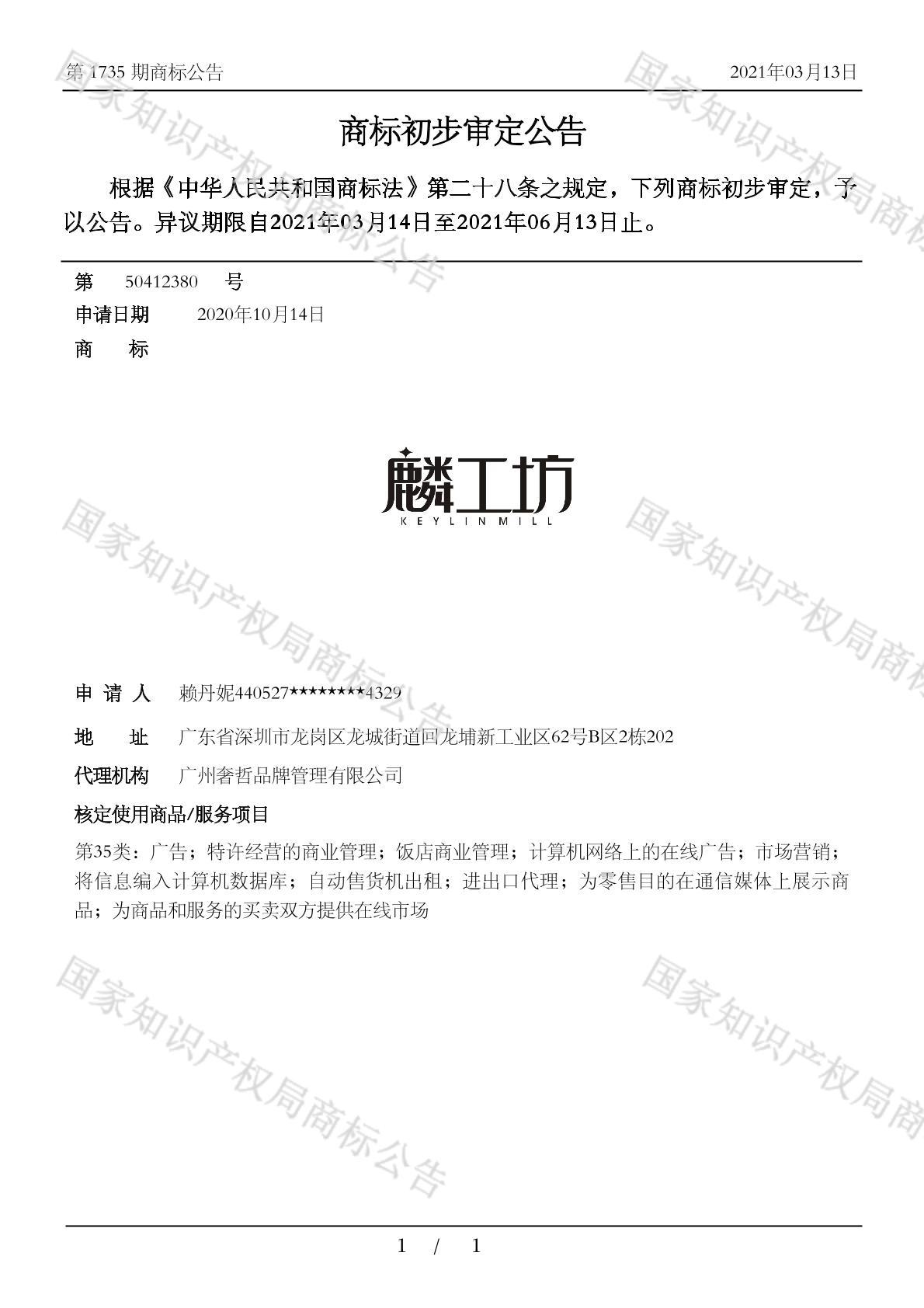 有效期限:2031-06-13 组合类型:中文注册号:50412380
