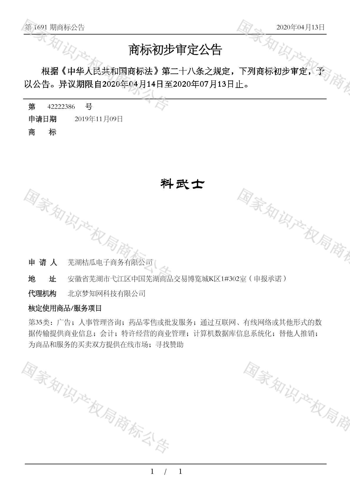 有效期限:2030-07-13 组合类型:中文注册号:42222386