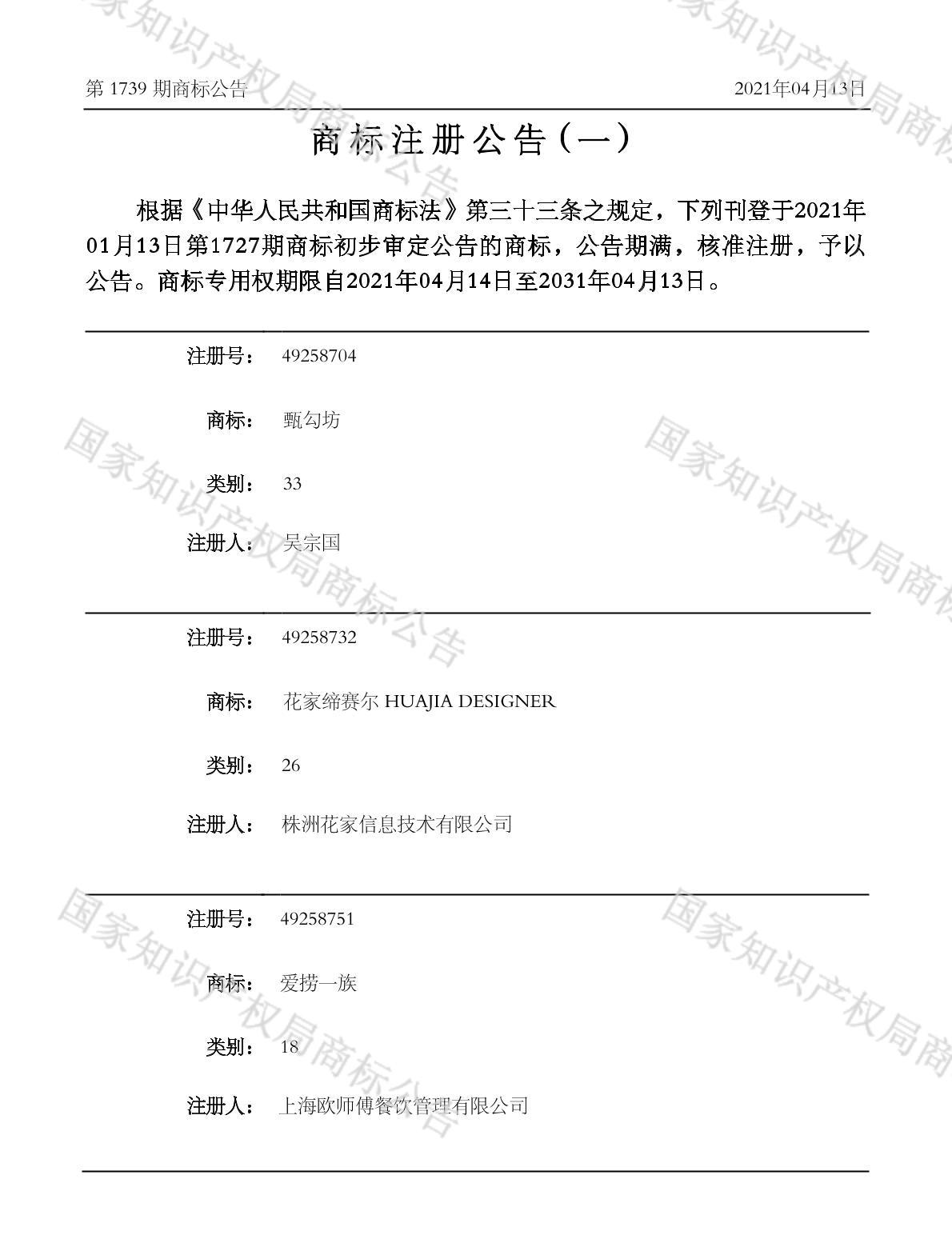 有效期限:2031-04-13 组合类型:中文注册号:49258704