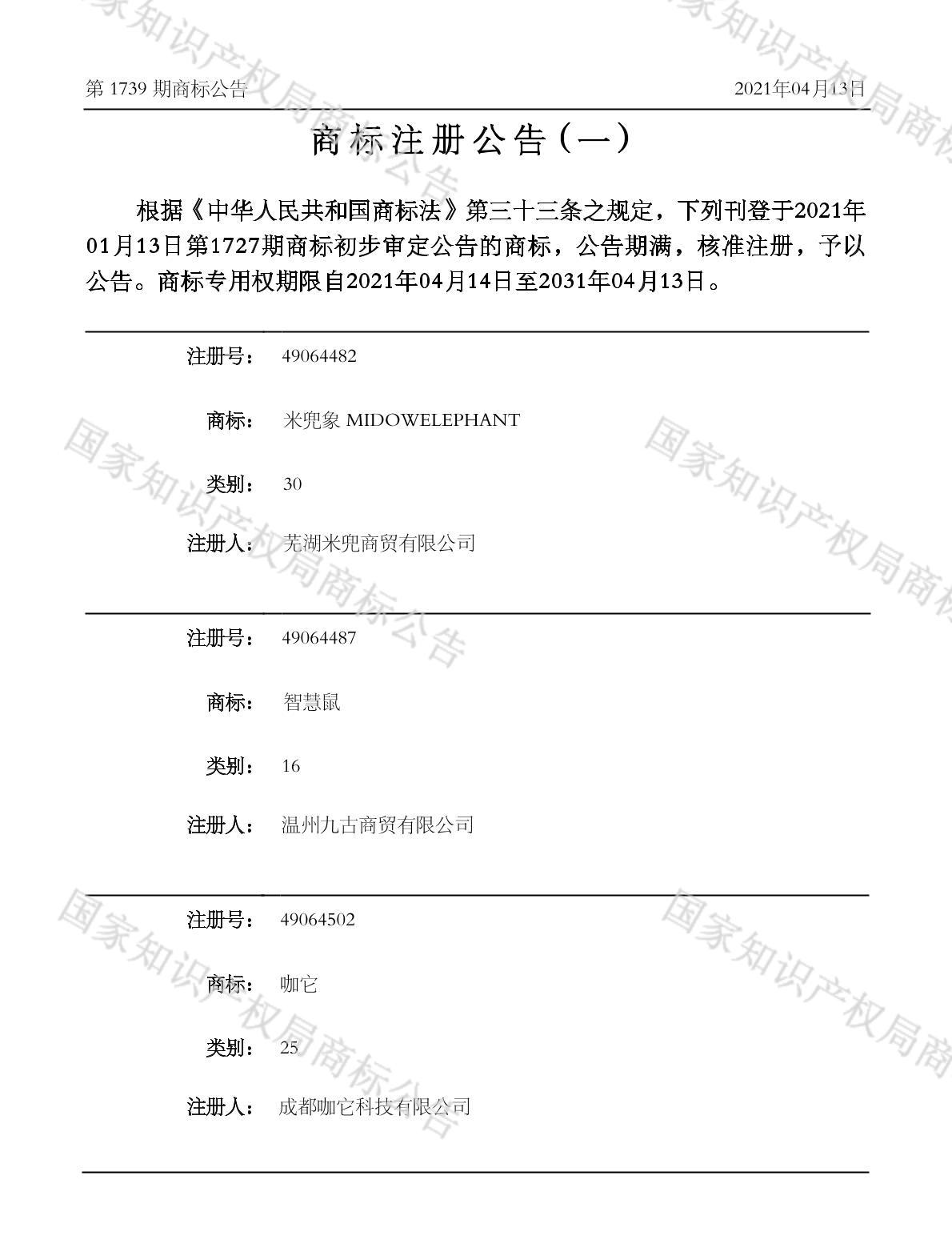 注册公告期号:1739