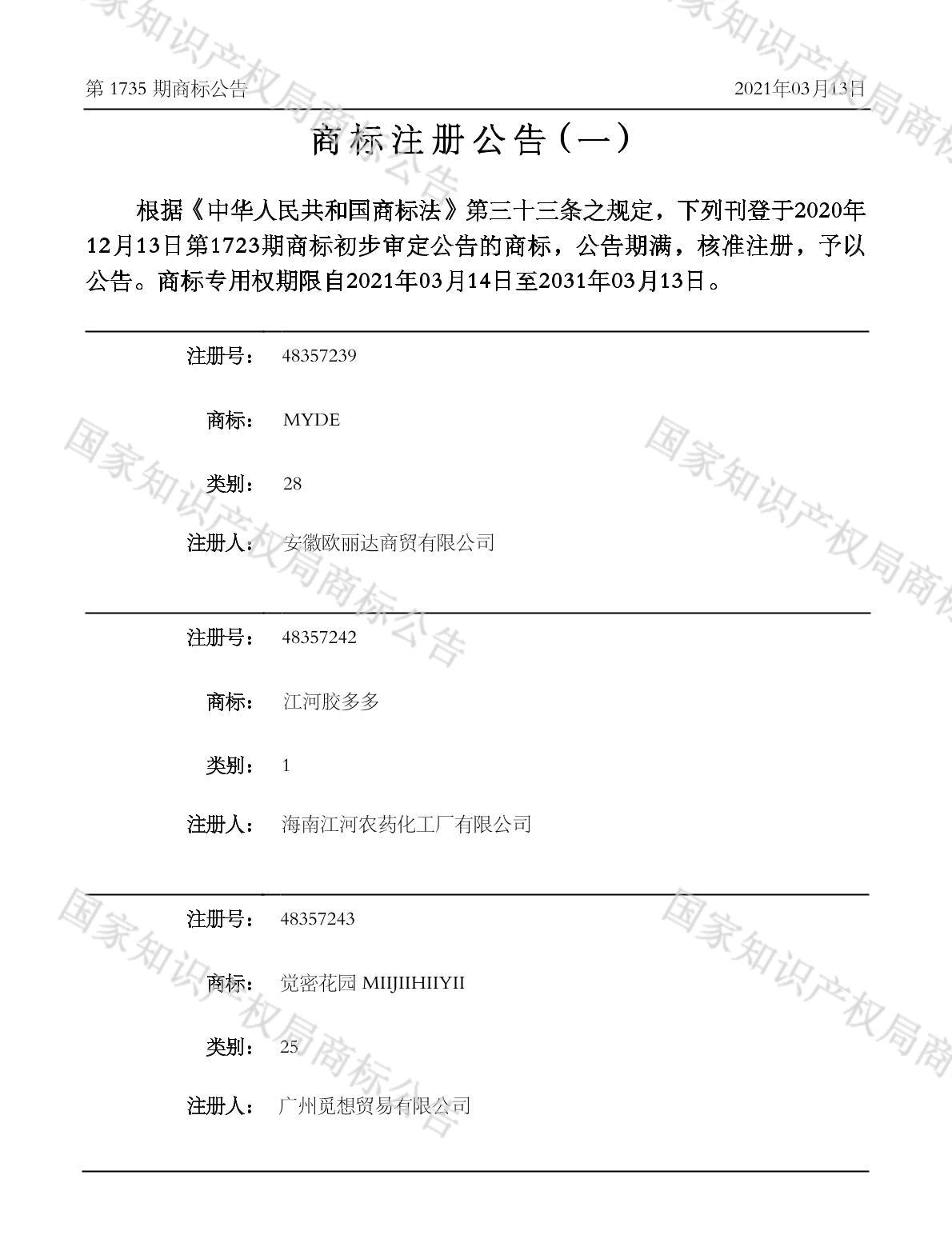 注册公告期号:1735