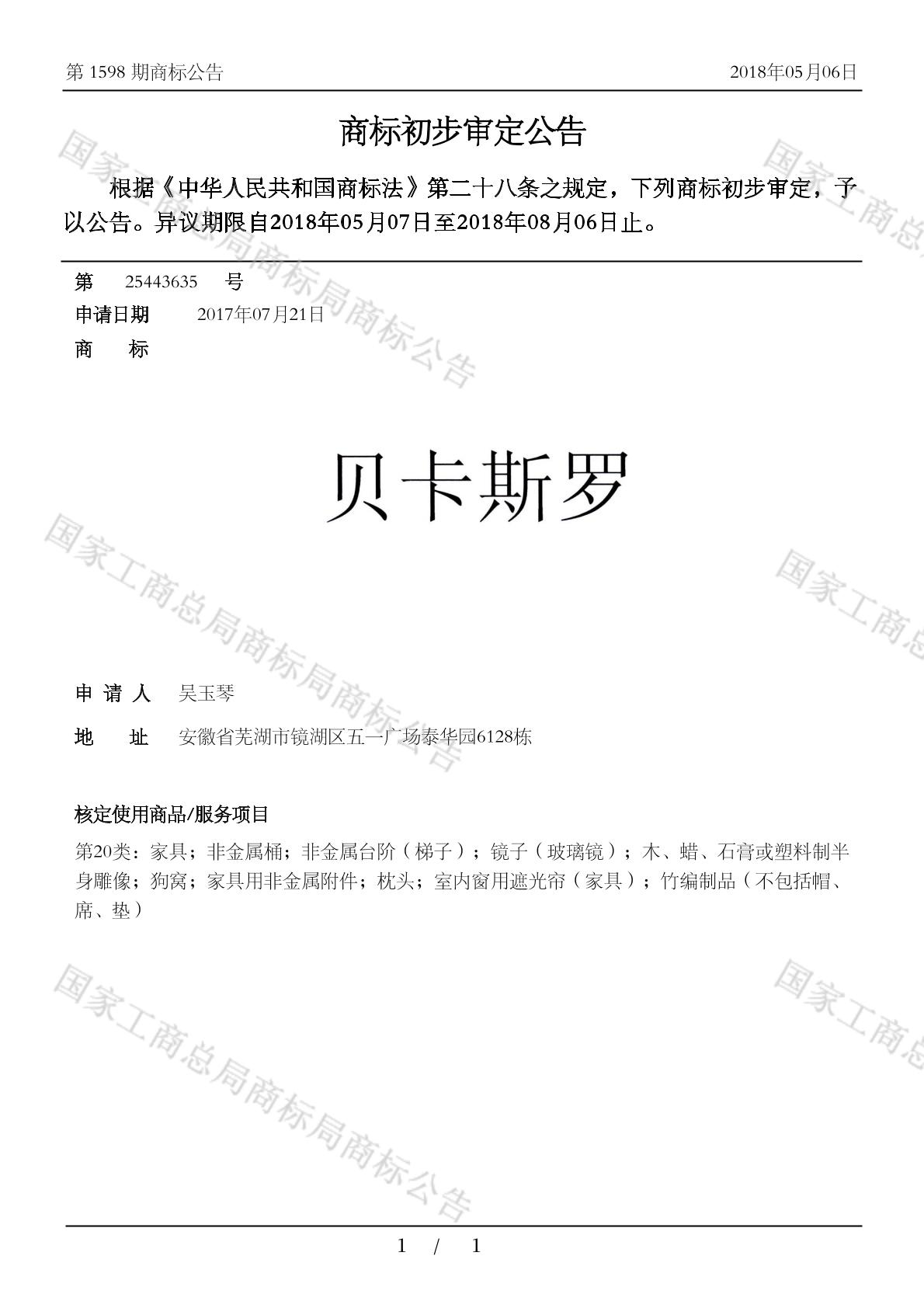 有效期限:2028-08-06 组合类型:中文注册号:25443635