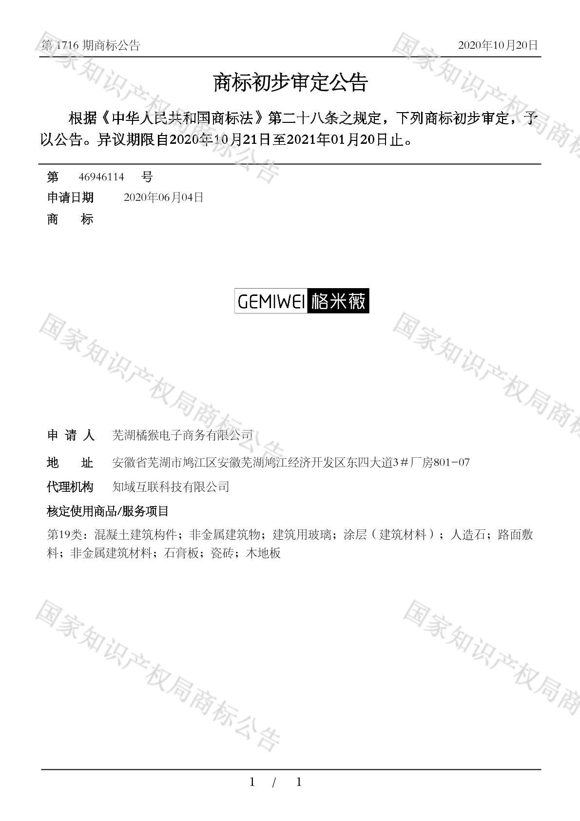 有效期限:2031-01-20 组合类型:中文注册号:46946114