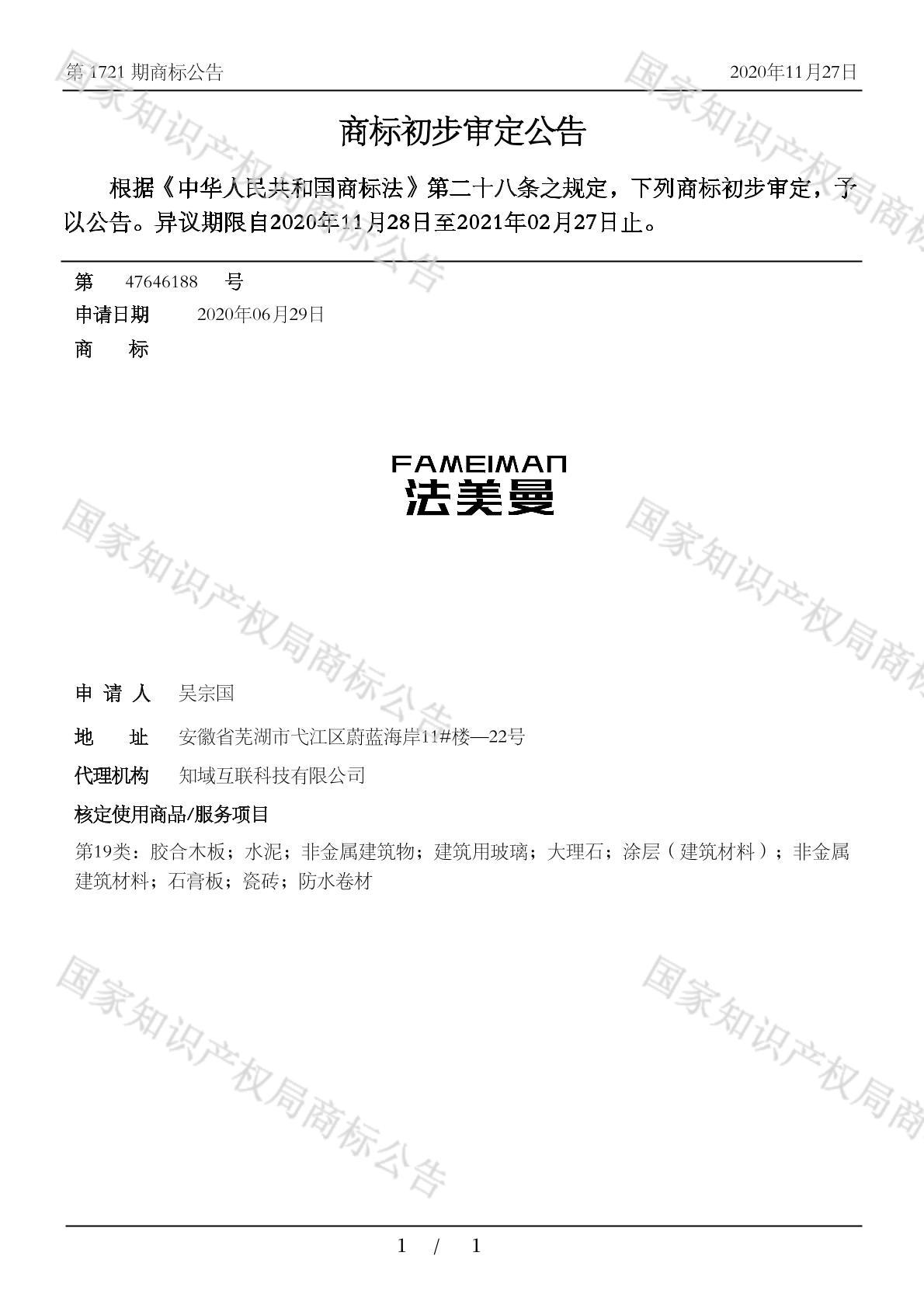 有效期限:2031-02-27 组合类型:中文注册号:47646188