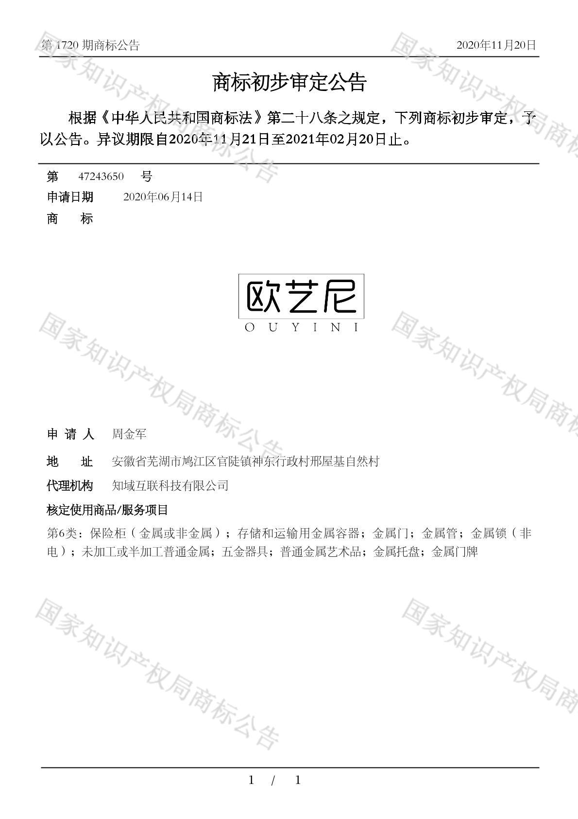 初审公告日期:2020-11-20