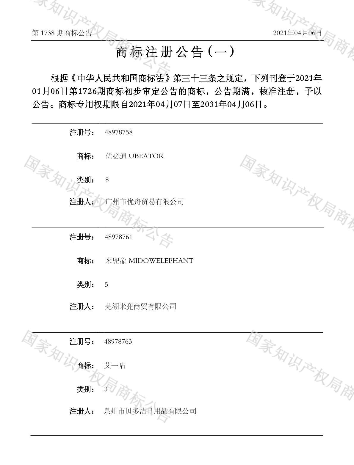 有效期限:2031-04-06 组合类型:中文注册号:48978761