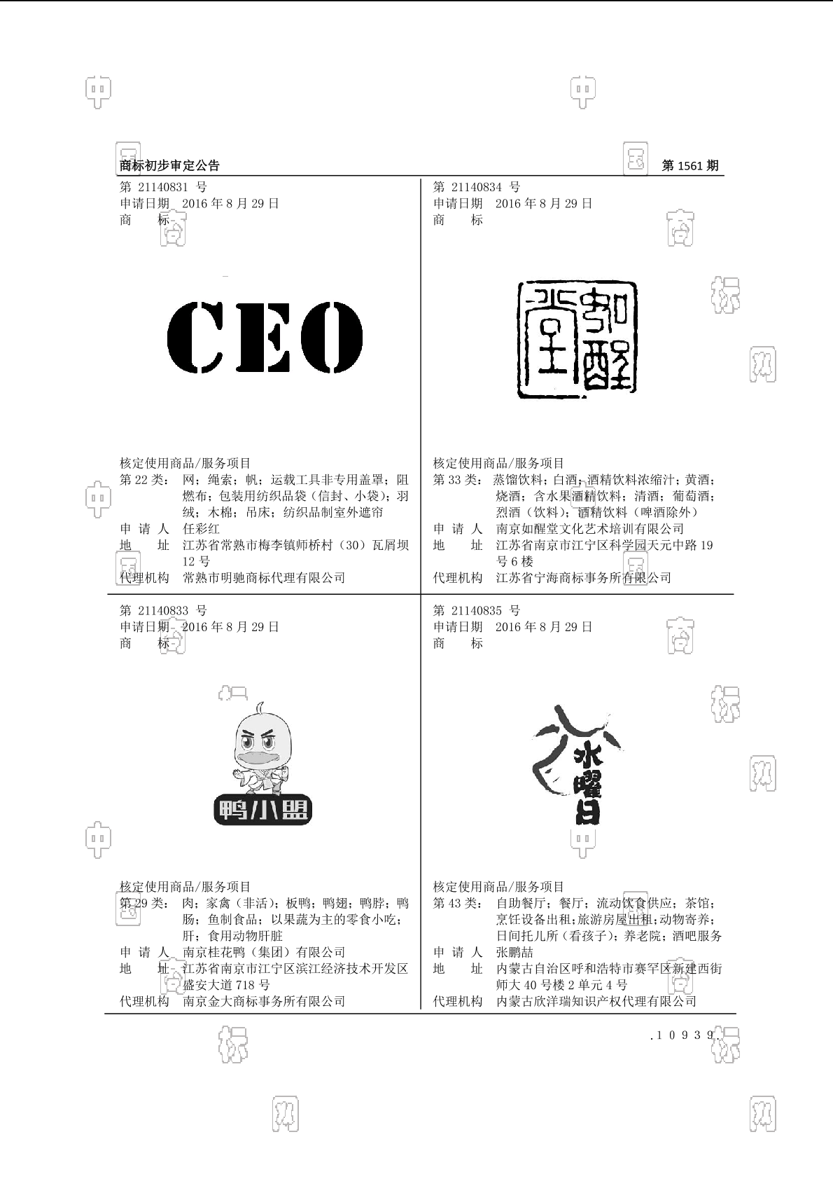 初审公告期号:1561