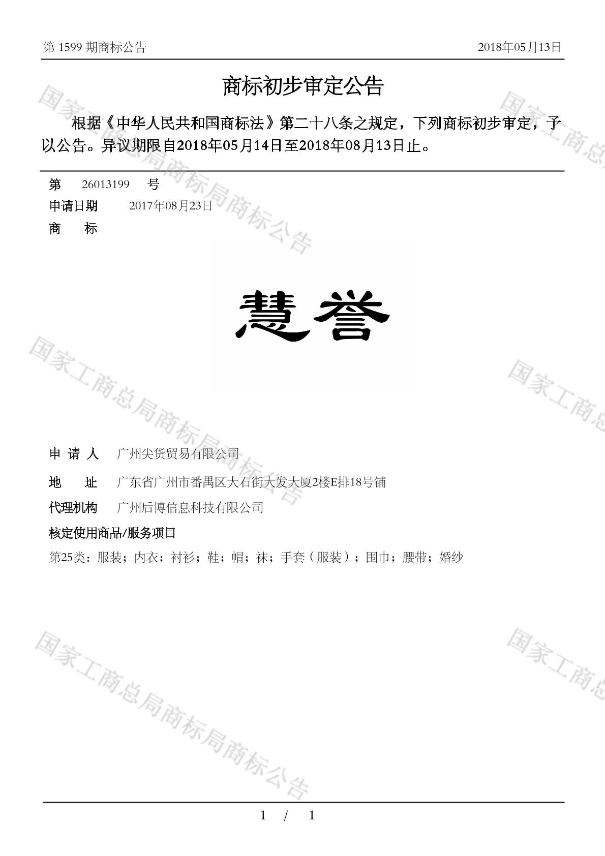 有效期限:2028-08-13 组合类型:中文注册号:26013199