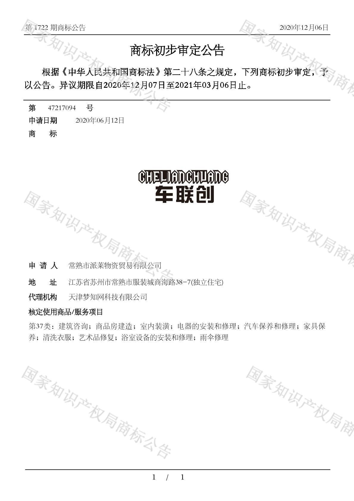 有效期限:2031-03-06 组合类型:中文注册号:47217094