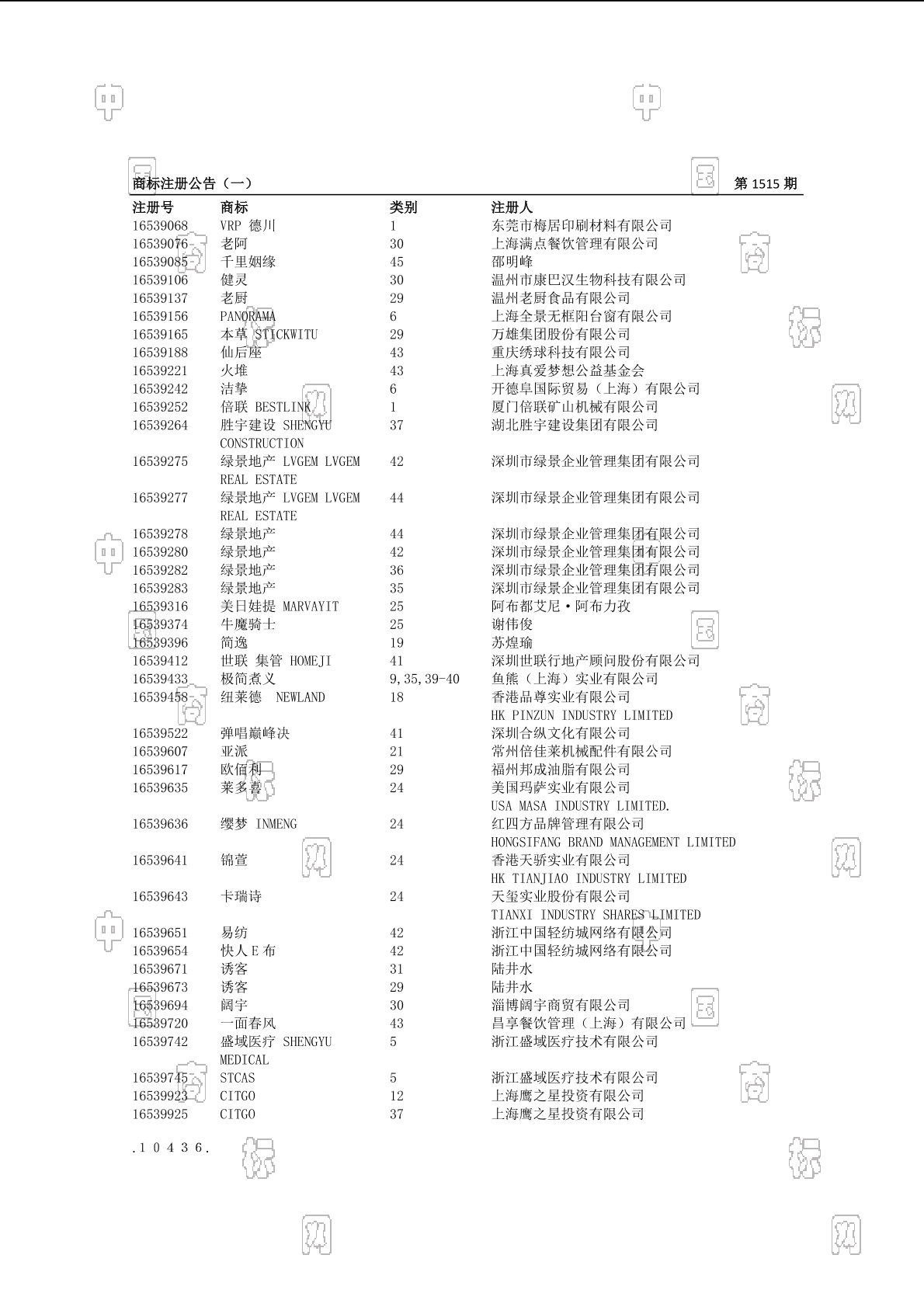 注册公告期号:1515