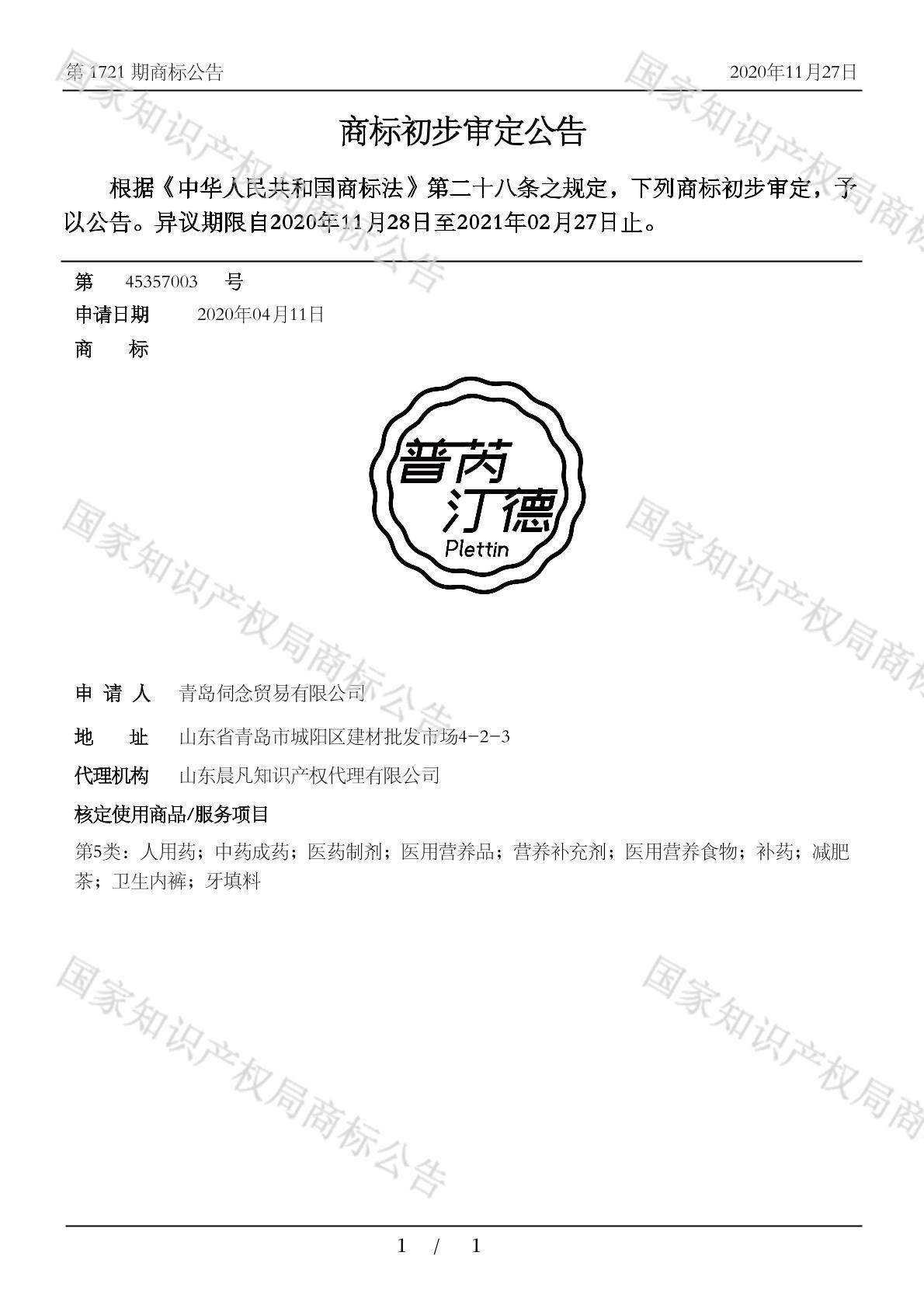 您当前位置:首页商标转让5类商标普芮汀德 PLETTIN