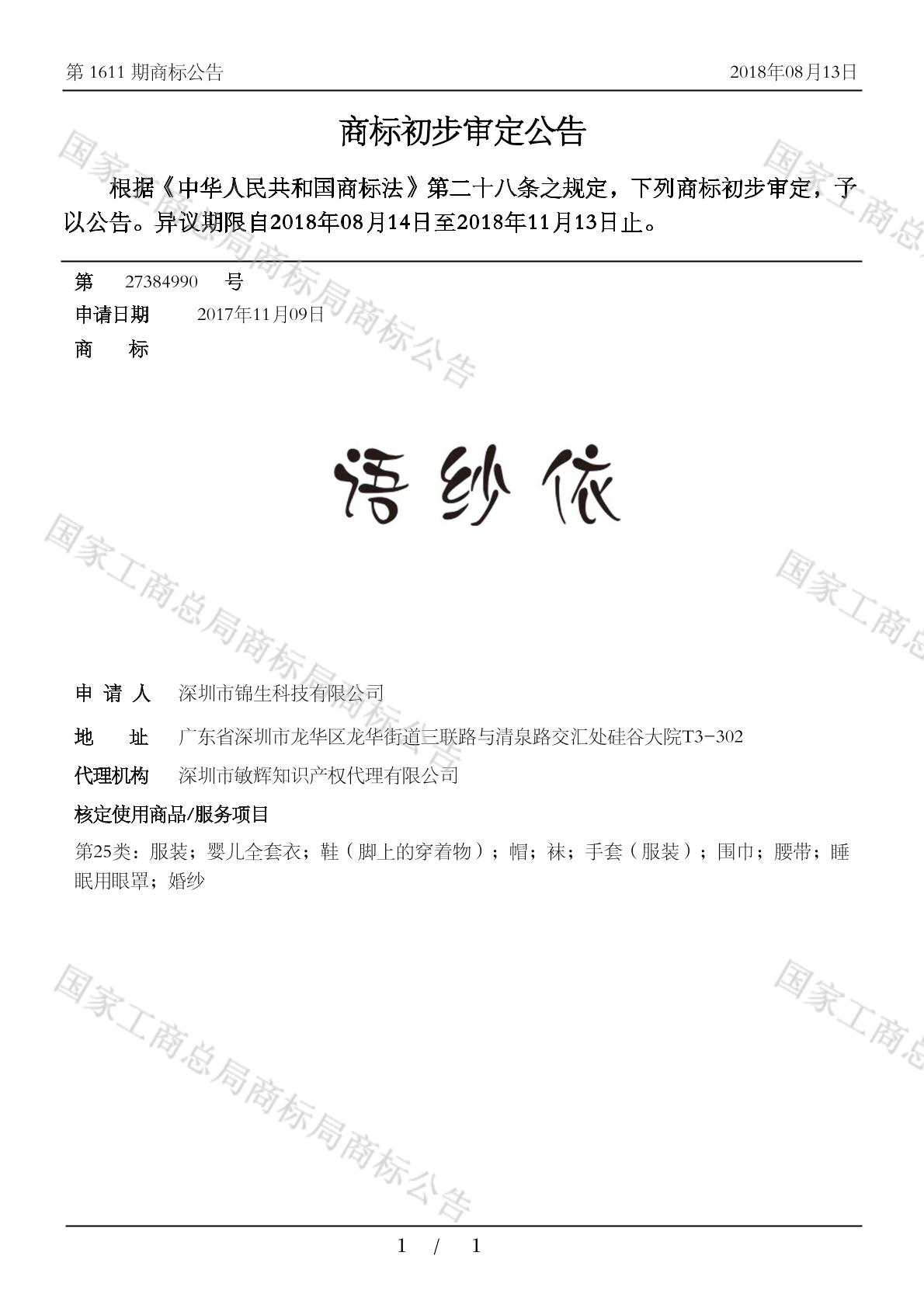 有效期限:2028-11-13 组合类型:中文注册号:27384990