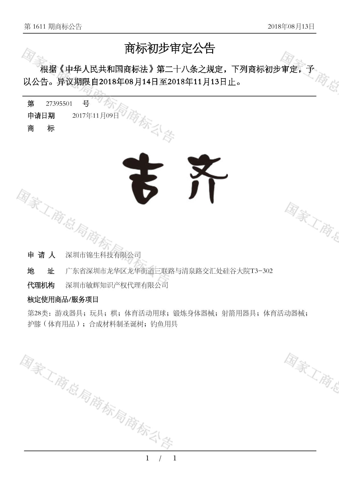 有效期限:2028-11-13 组合类型:中文注册号:27395501