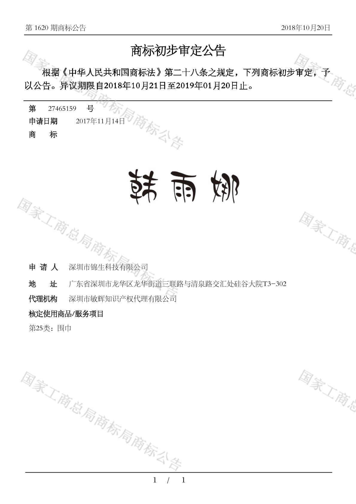 有效期限:2029-01-20 组合类型:中文注册号:27465159