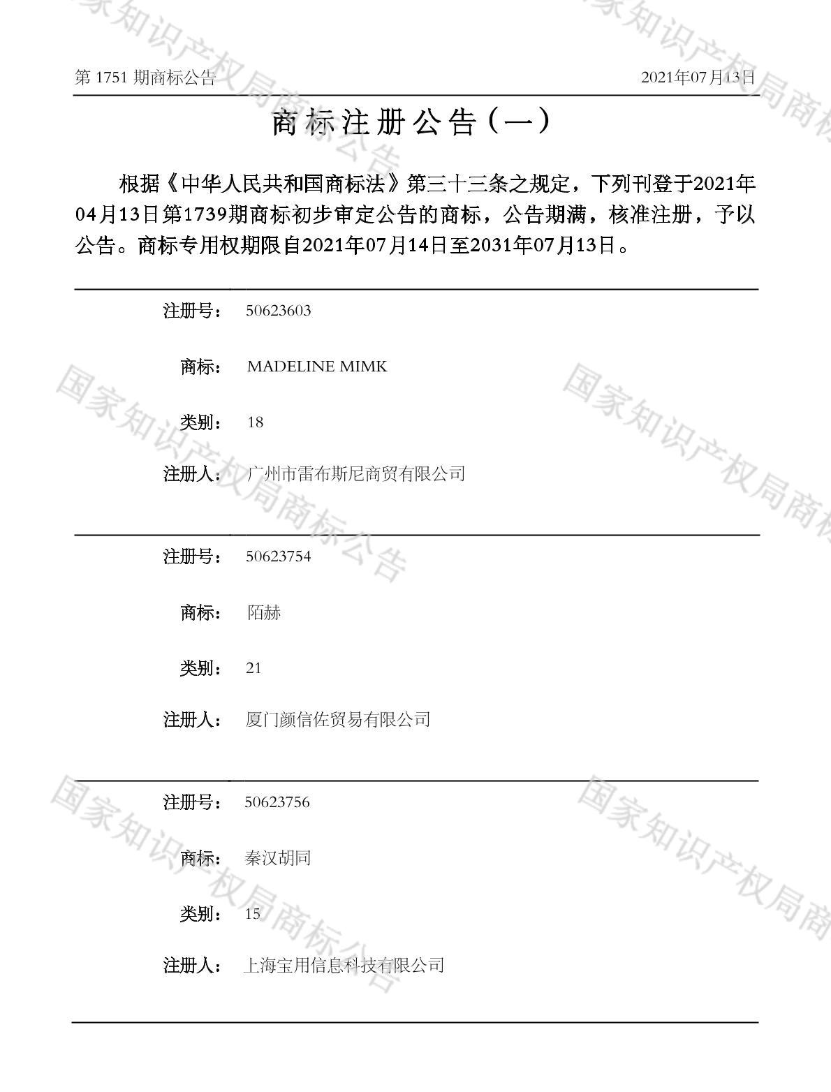注册公告期号:1751