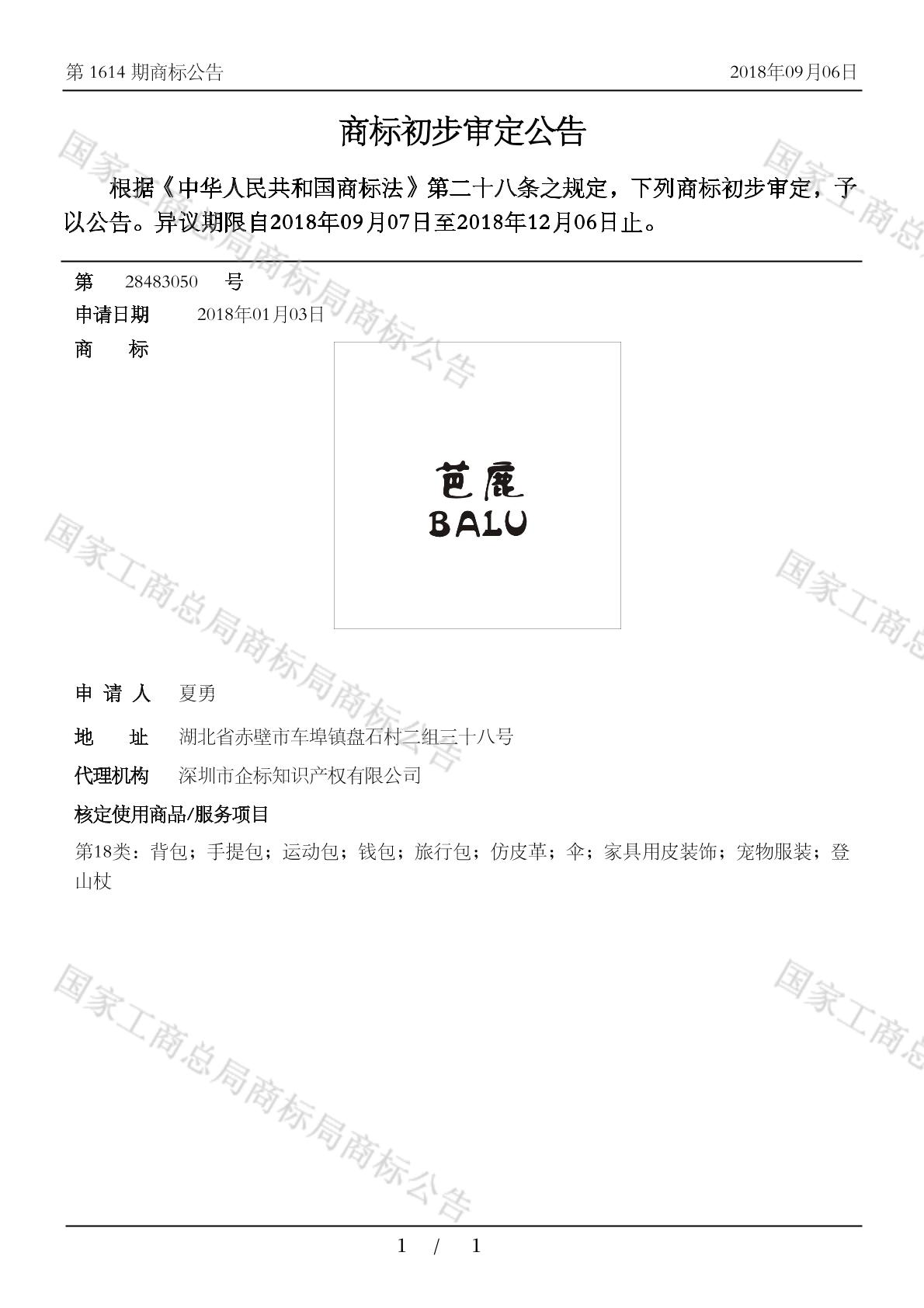 初审公告日期:2018-09-06