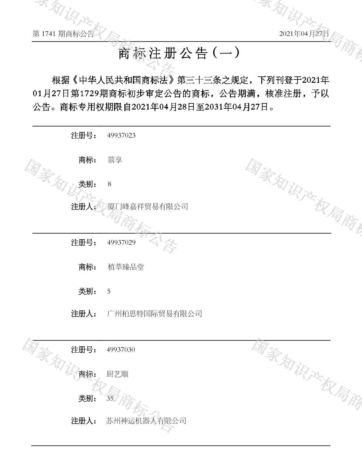 有效期限:2031-04-27 组合类型:中文注册号:49937023