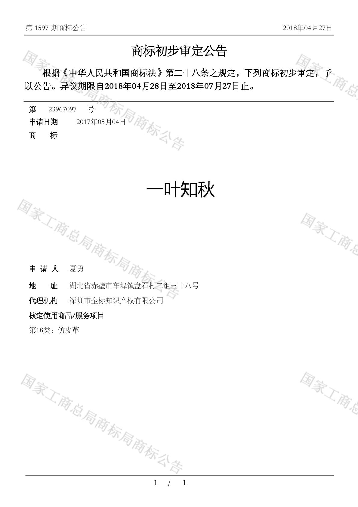 初审公告期号:1597