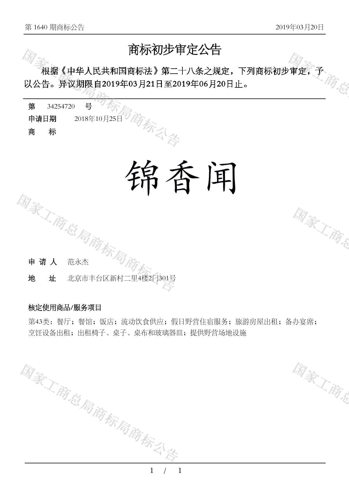 有效期限:2029-06-20 组合类型:中文注册号:34254720