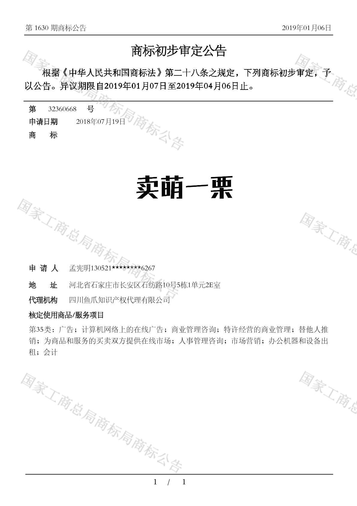 有效期限:2029-04-06 组合类型:中文注册号:32360668