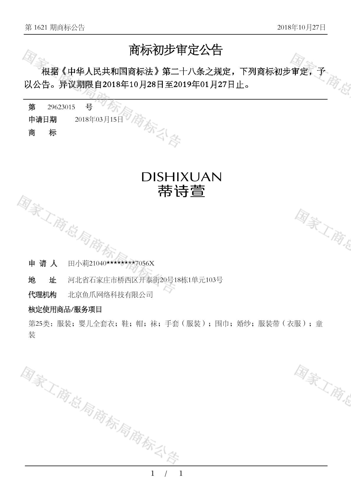 注册公告期号:1633