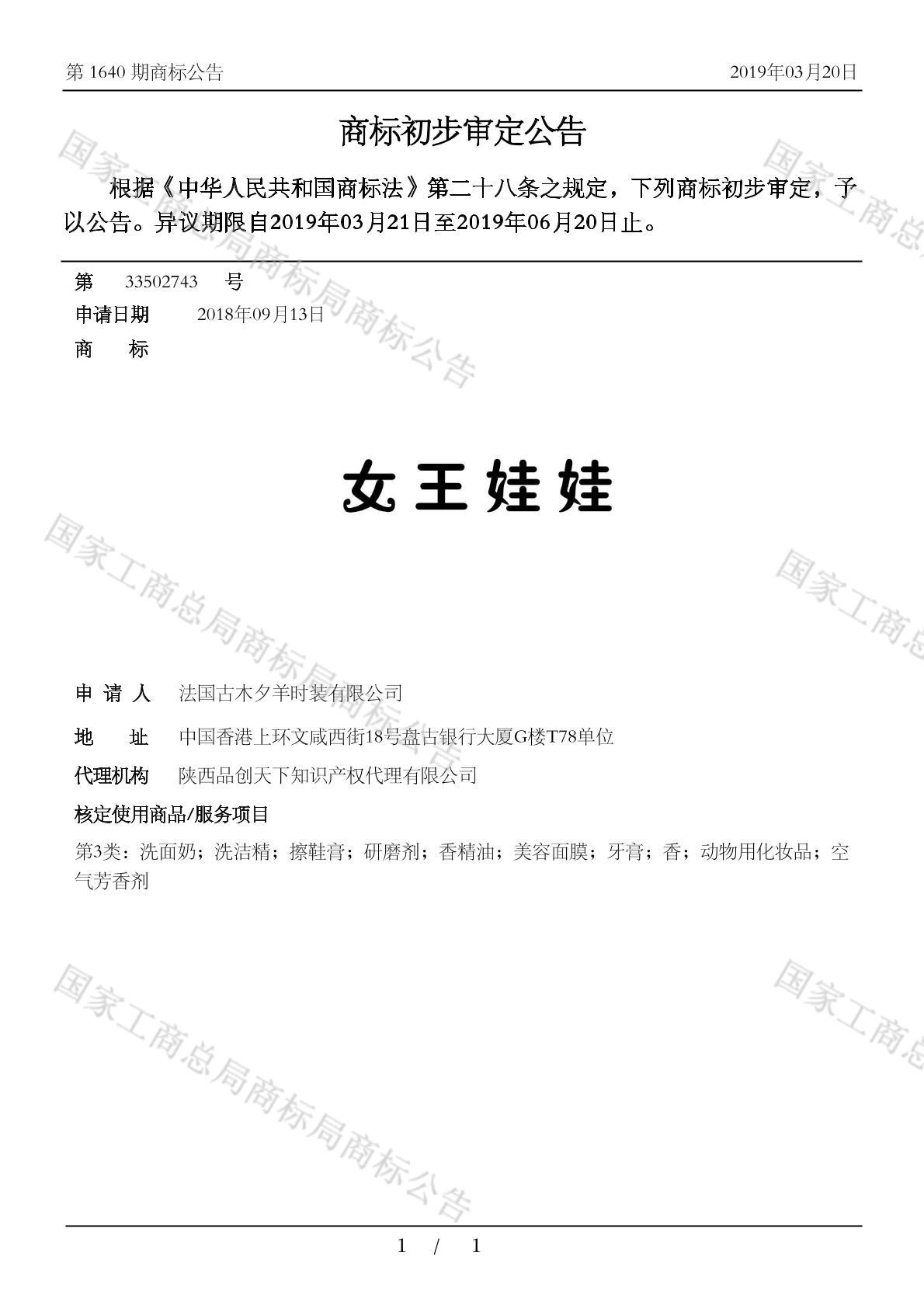 有效期限:2029-06-20 组合类型:中文注册号:33502743