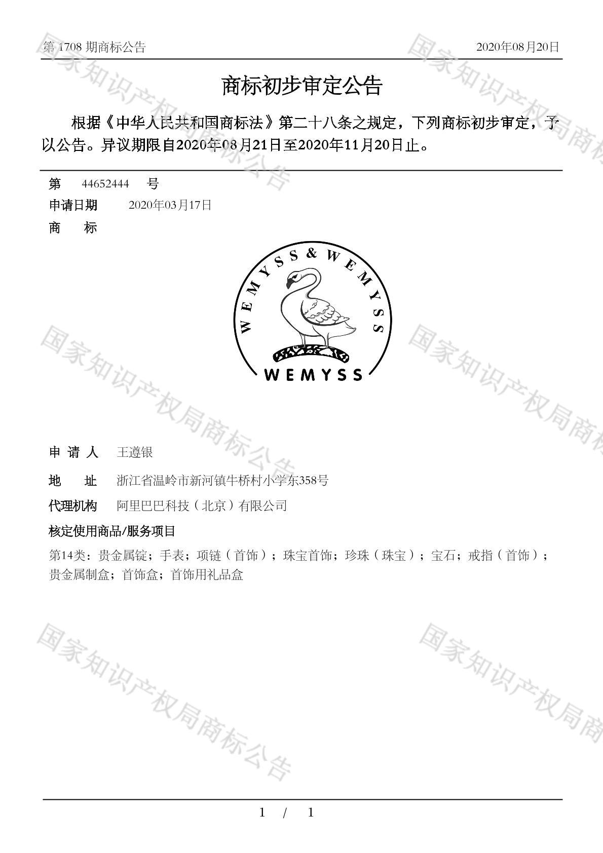 有效期限:2030-11-20 组合类型:中文注册号:44652444