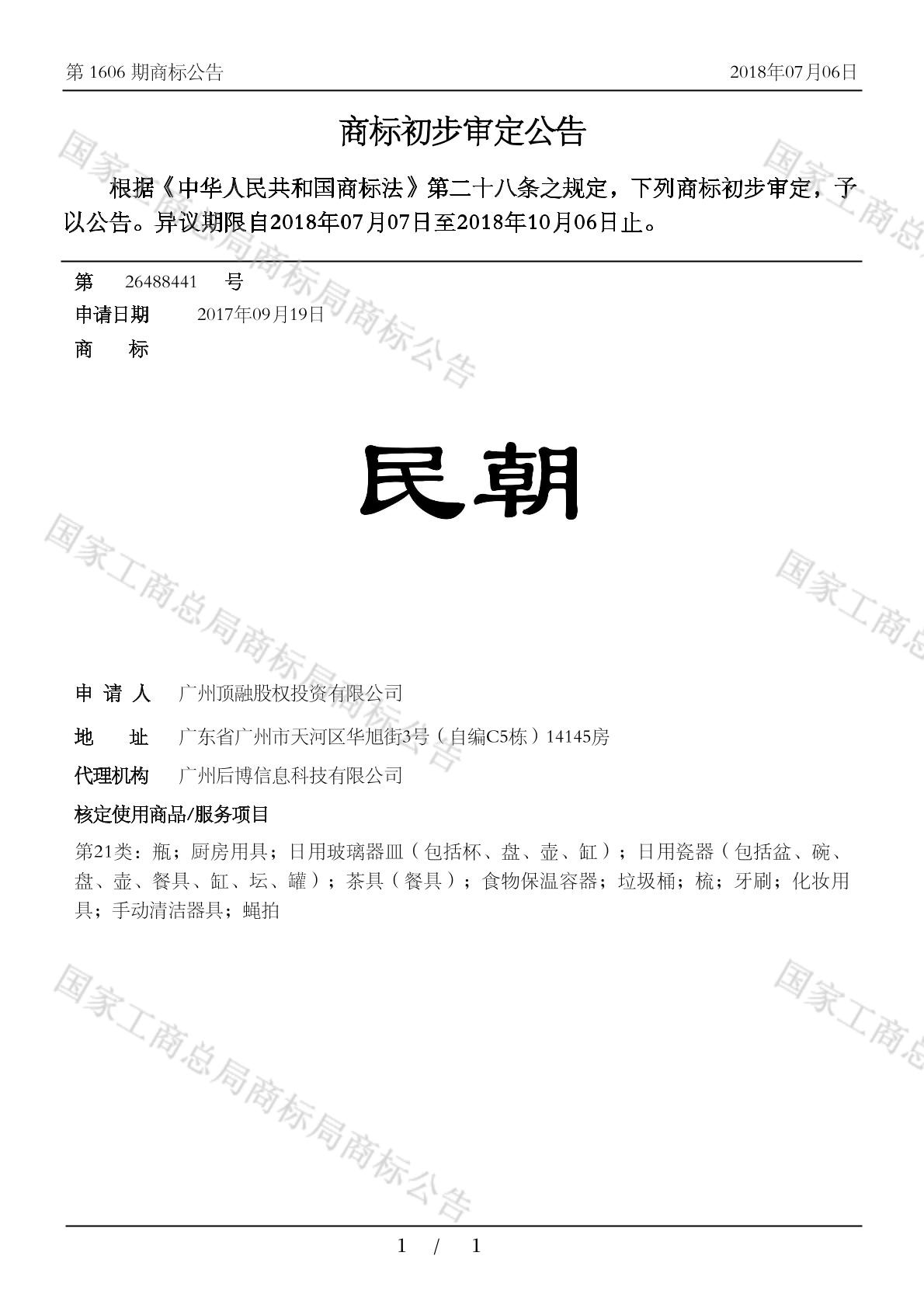 初审公告日期:2018-07-06