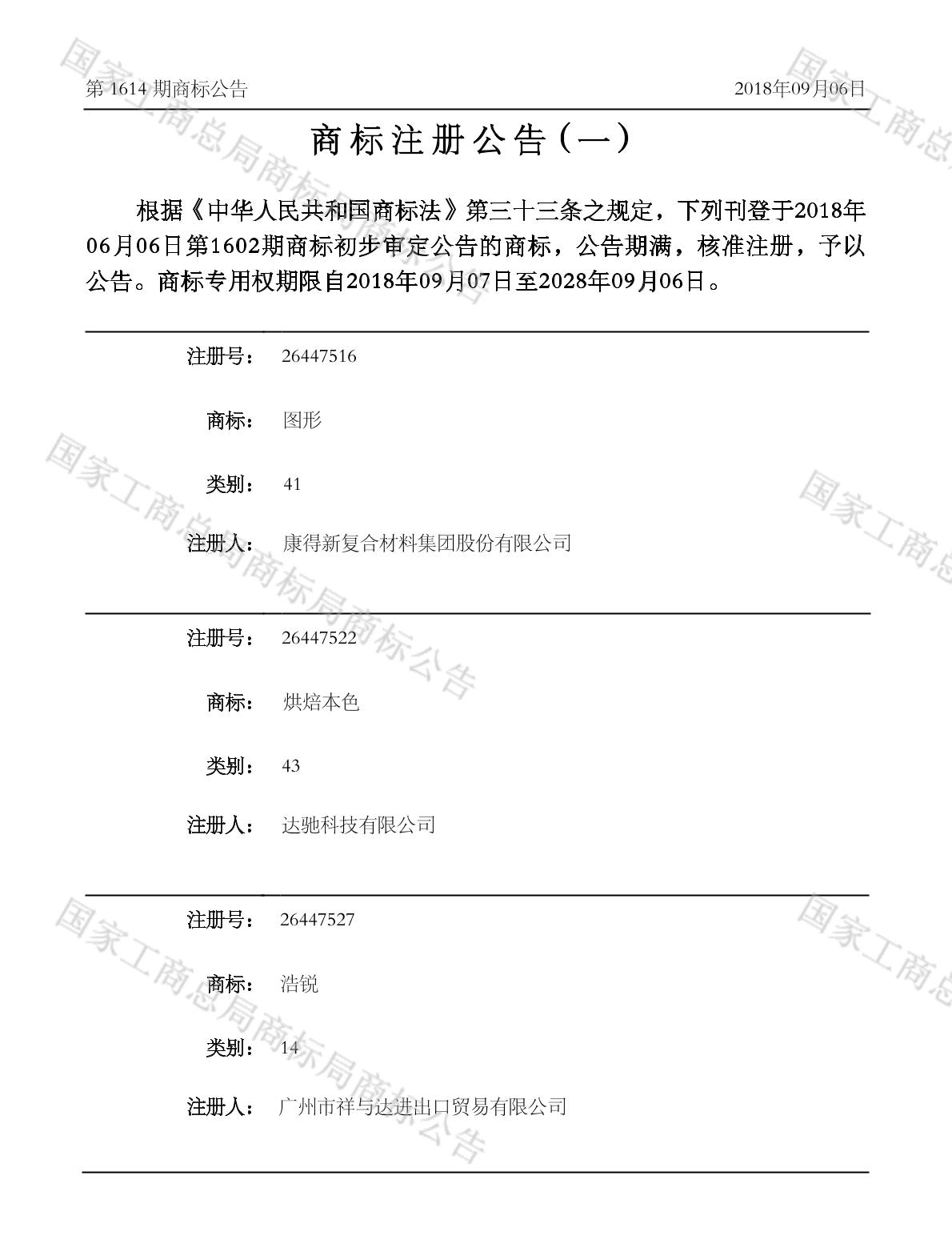 注册公告期号:1614
