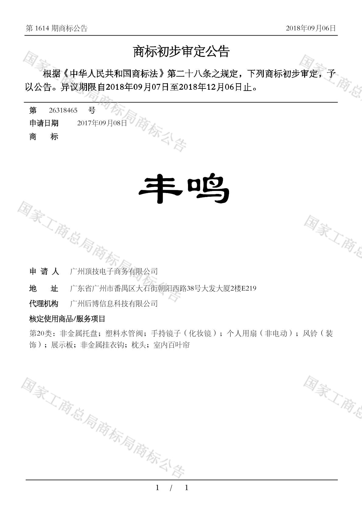 初审公告日期:2018-09-06