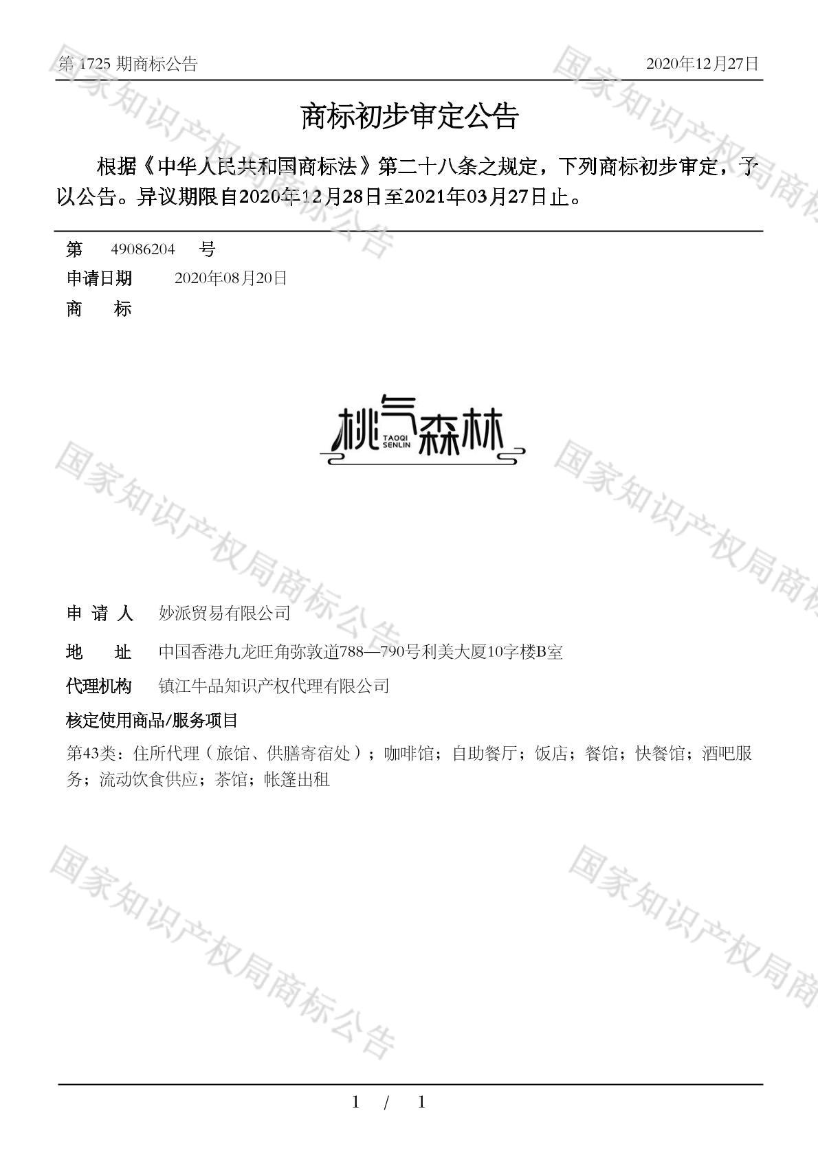 有效期限:2031-03-27 组合类型:中文注册号:49086204