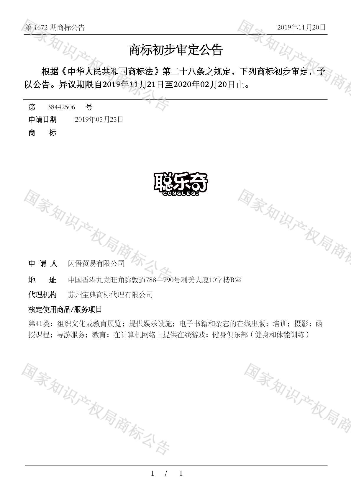 有效期限:2030-02-20 组合类型:中文注册号:38442506