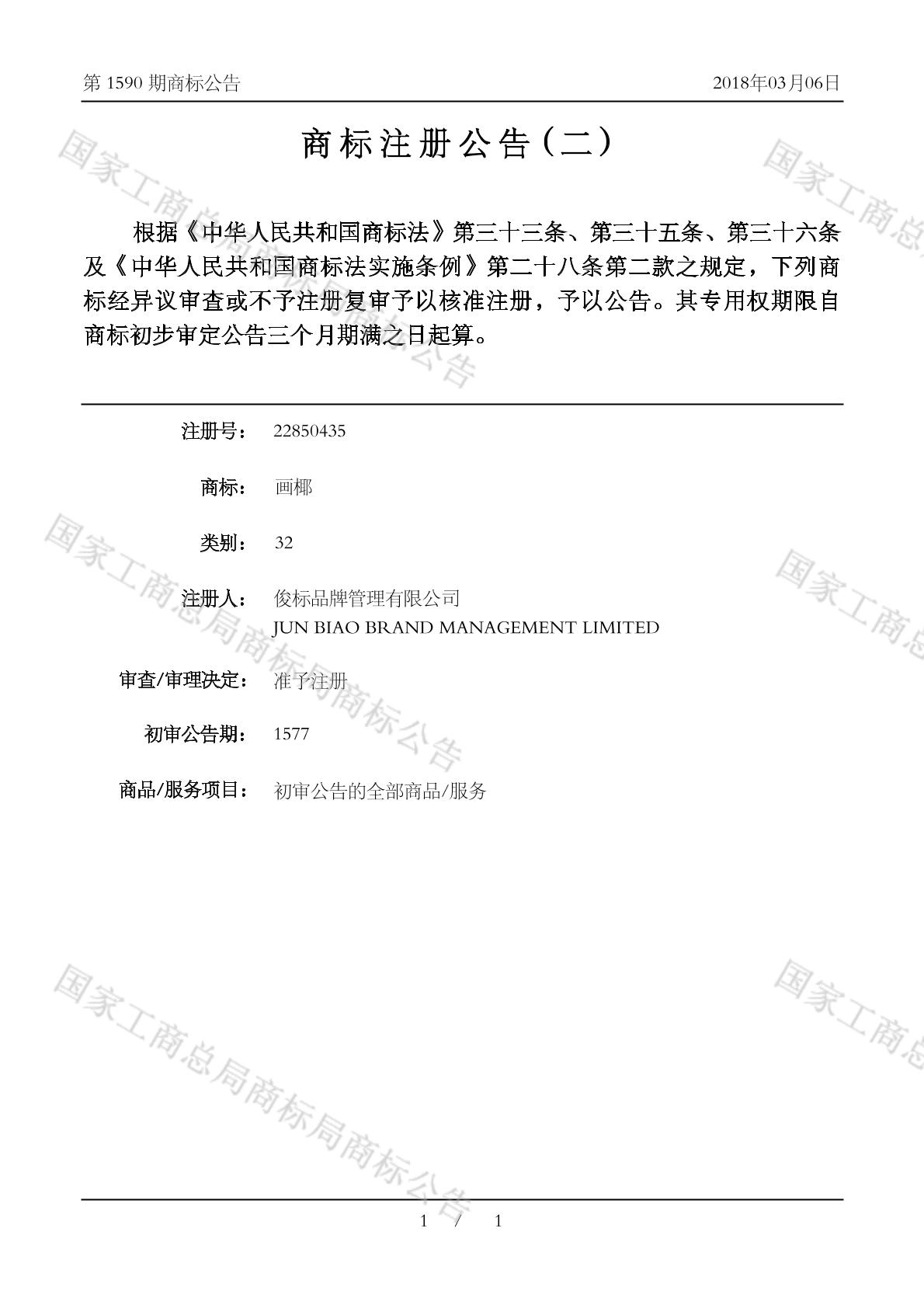 注册公告期号:1590