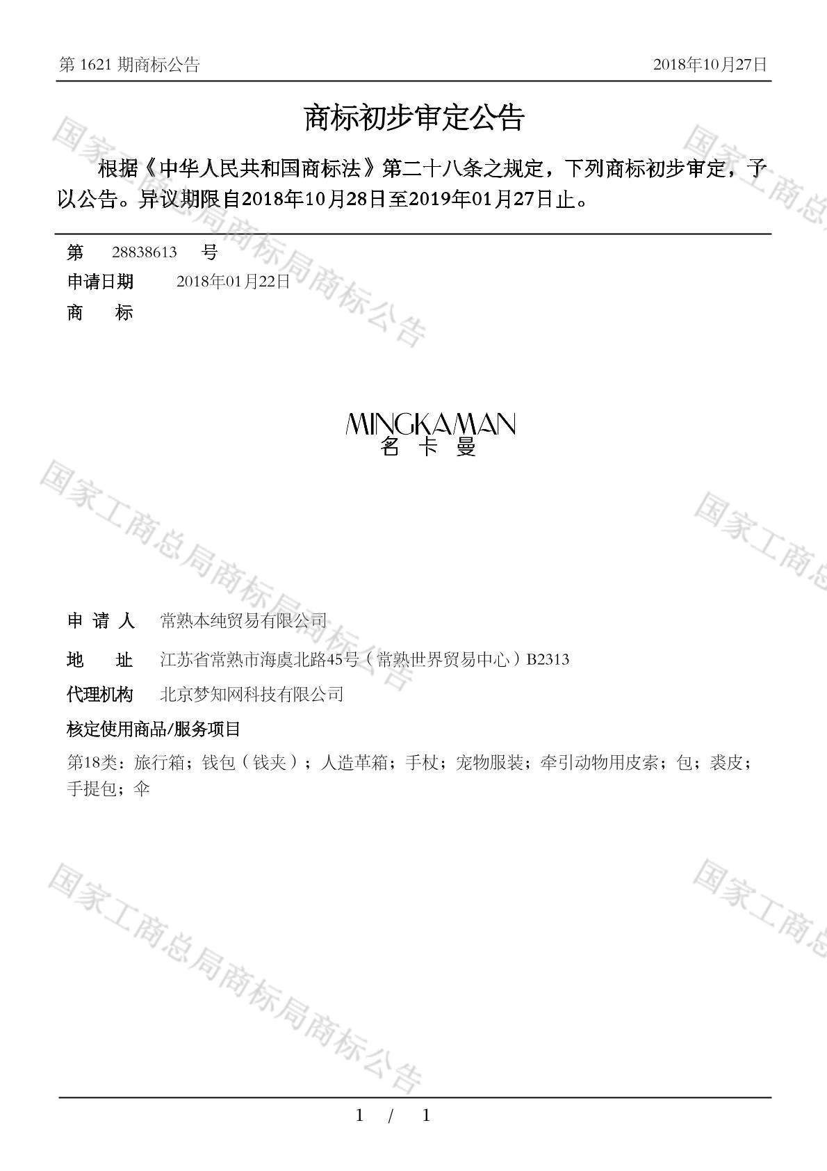初审公告日期:2018-10-27
