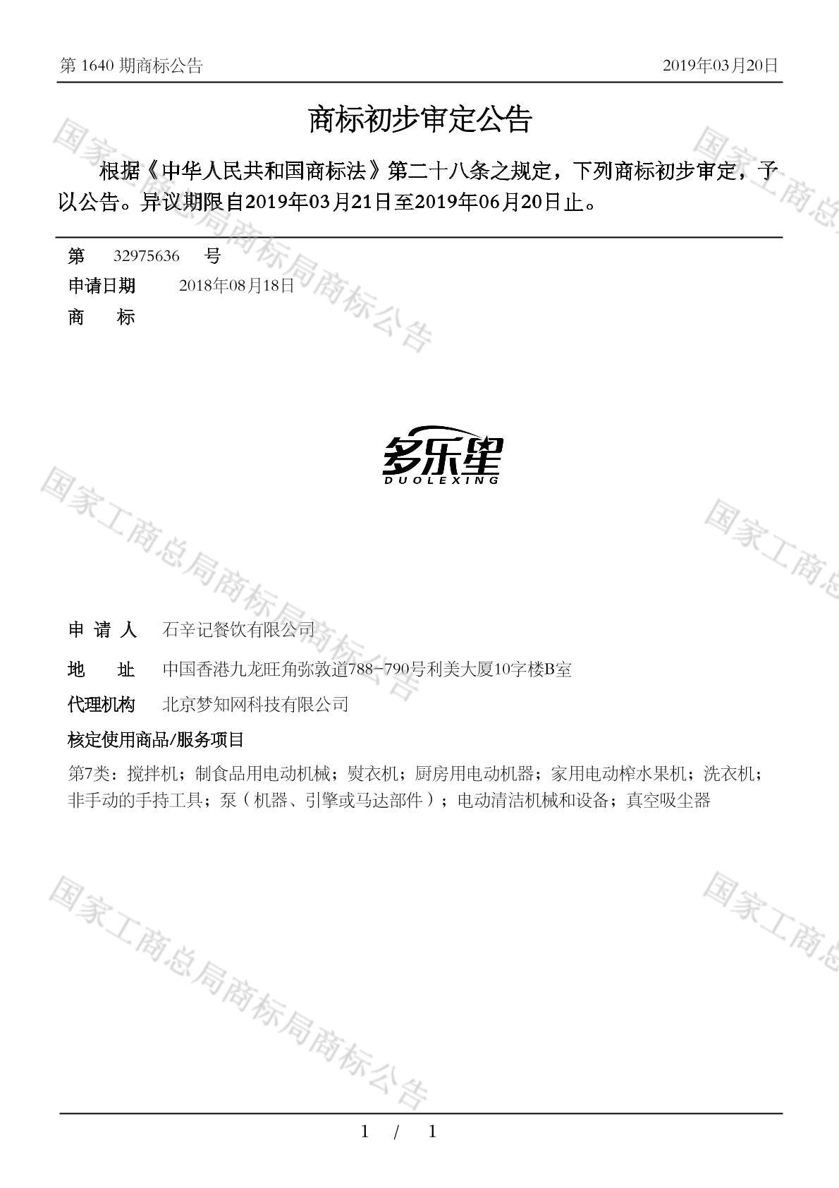 有效期限:2029-06-20 组合类型:中文注册号:32975636