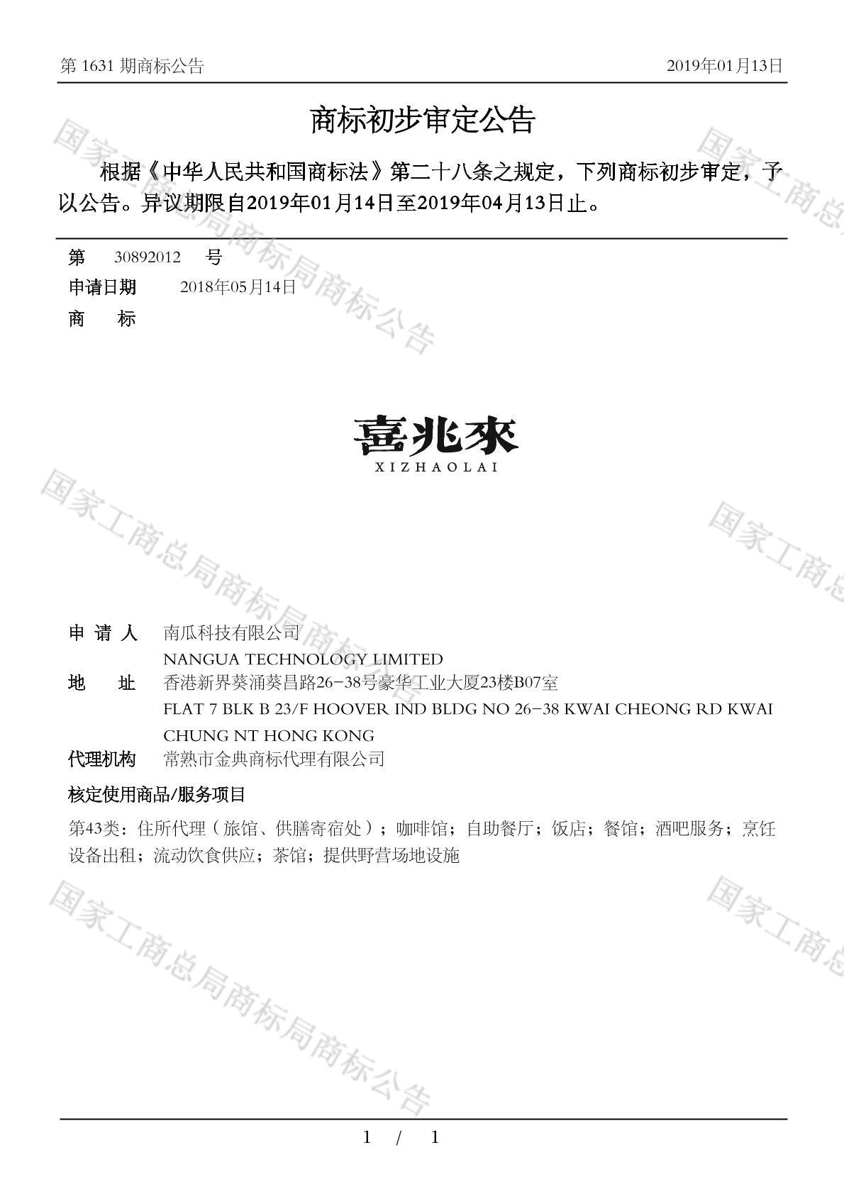 初审公告日期:2019-01-13