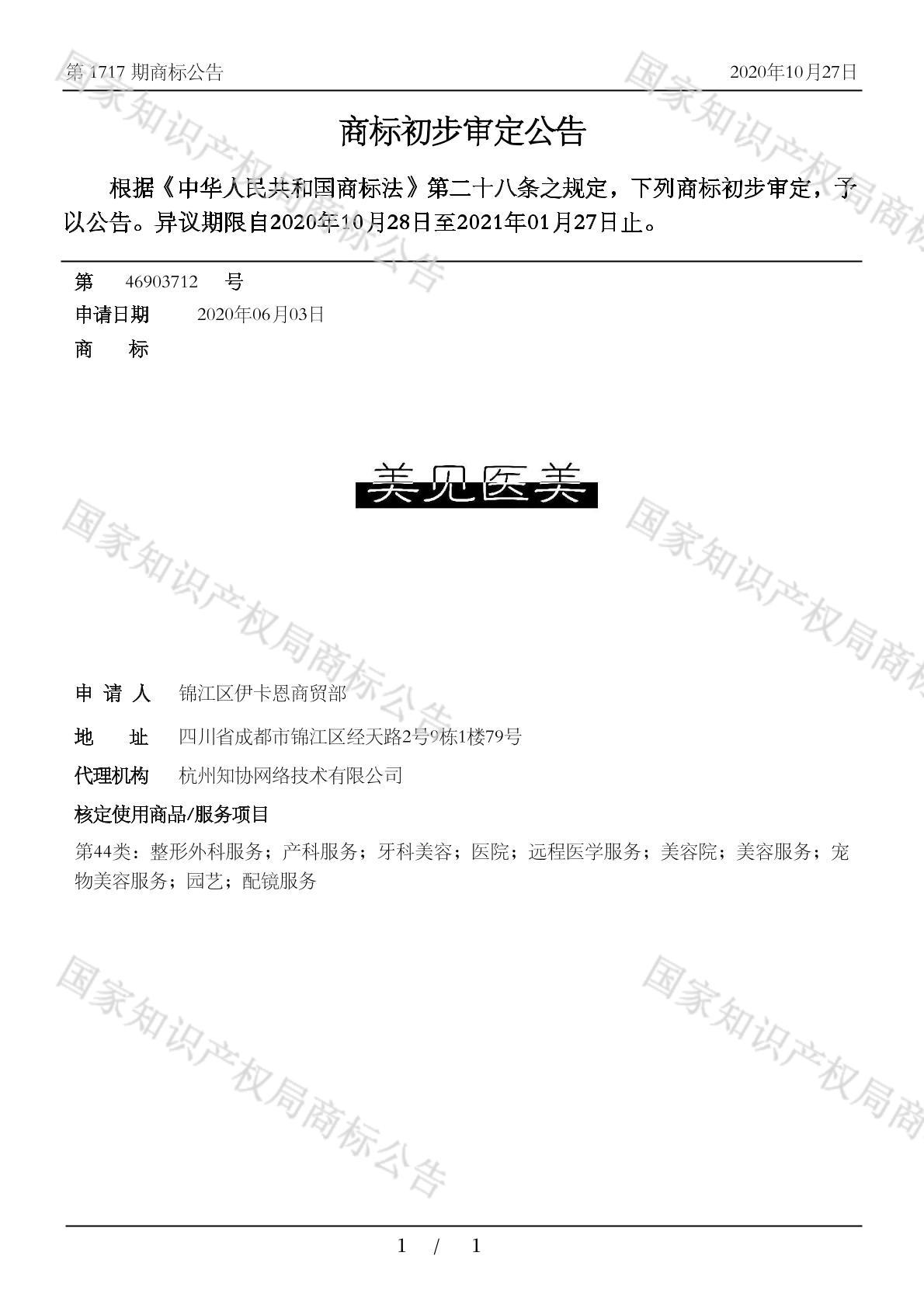 有效期限:2031-01-27 组合类型:中文注册号:46903712