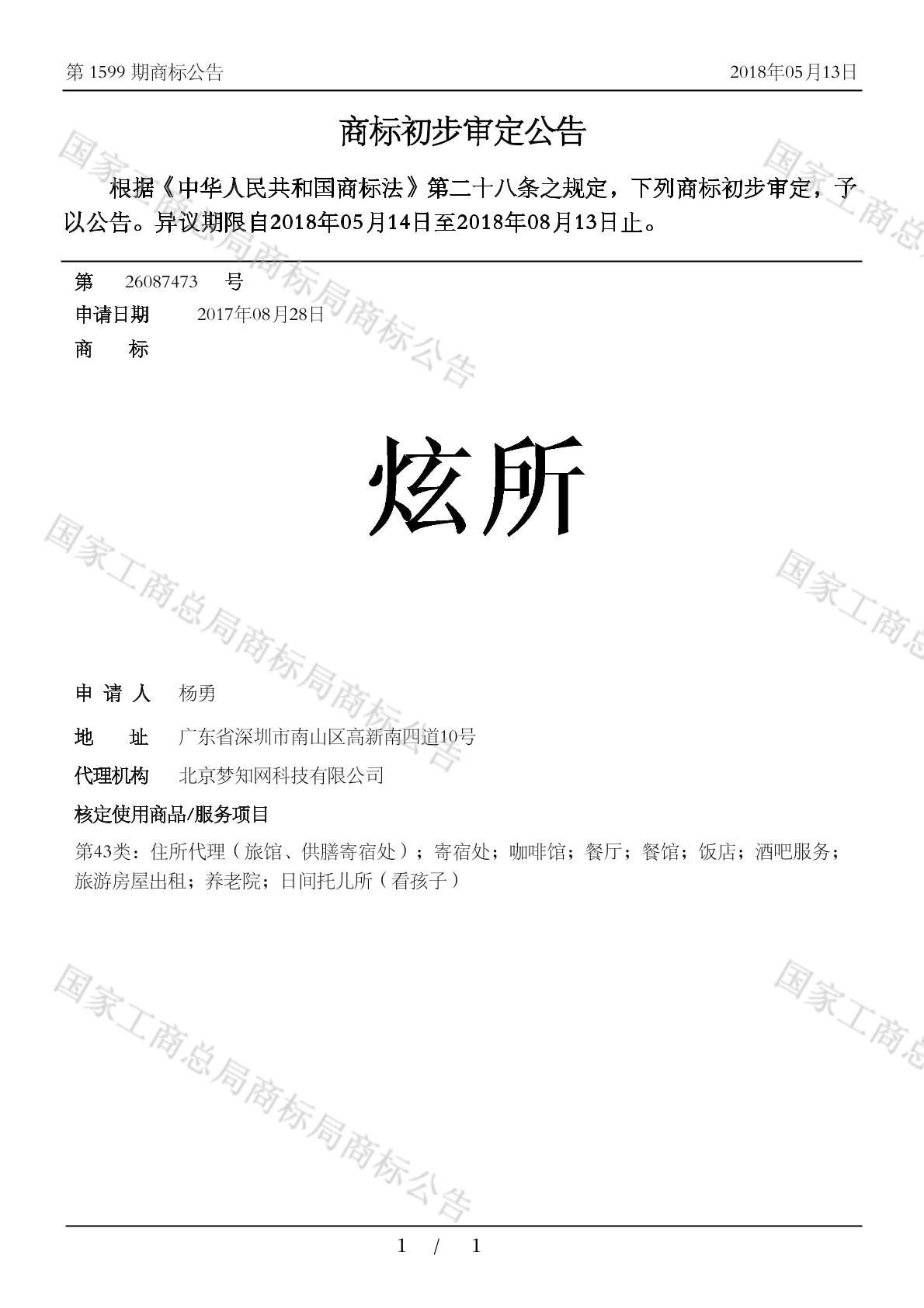 有效期限:2028-08-13 组合类型:中文注册号:26087473