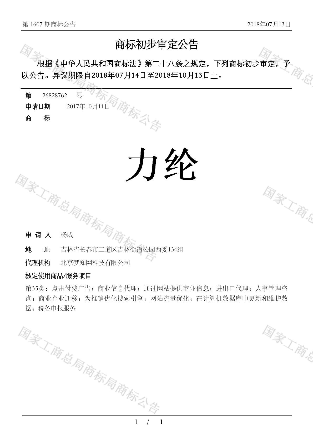 有效期限:2028-10-13 组合类型:中文注册号:26828762