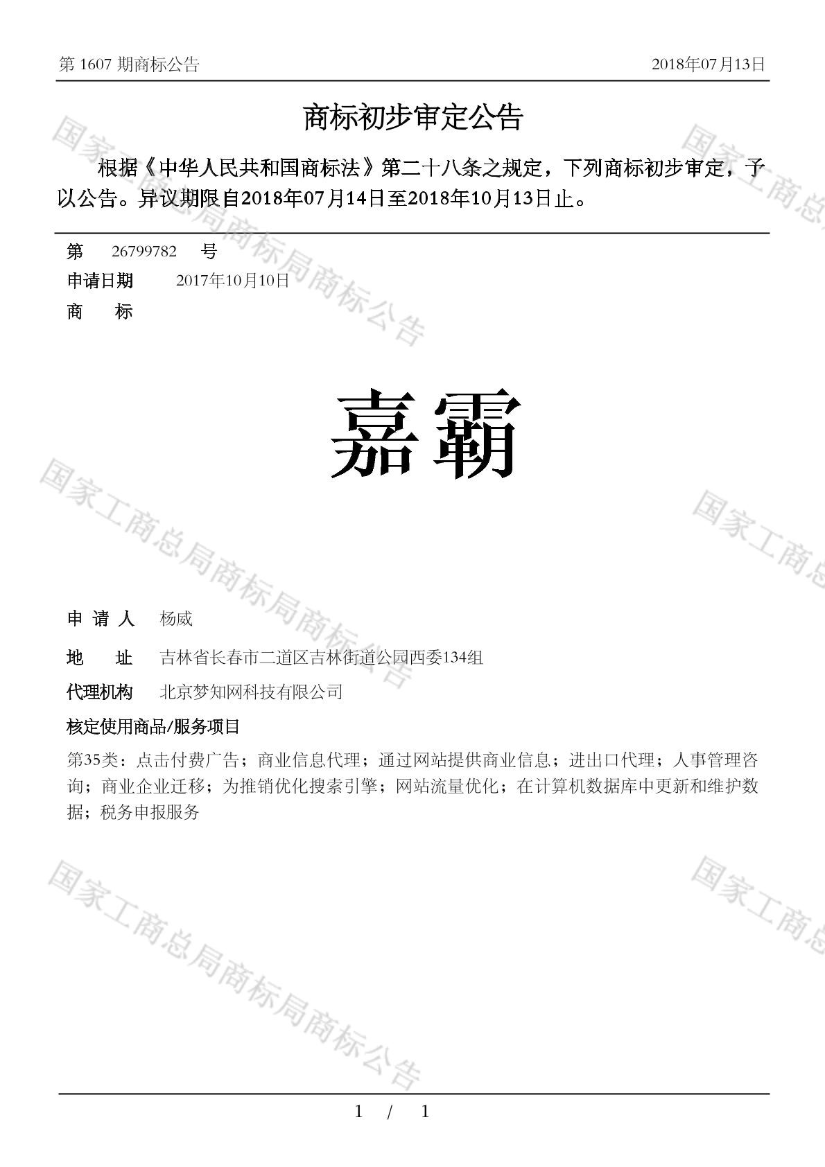 初审公告期号:1607