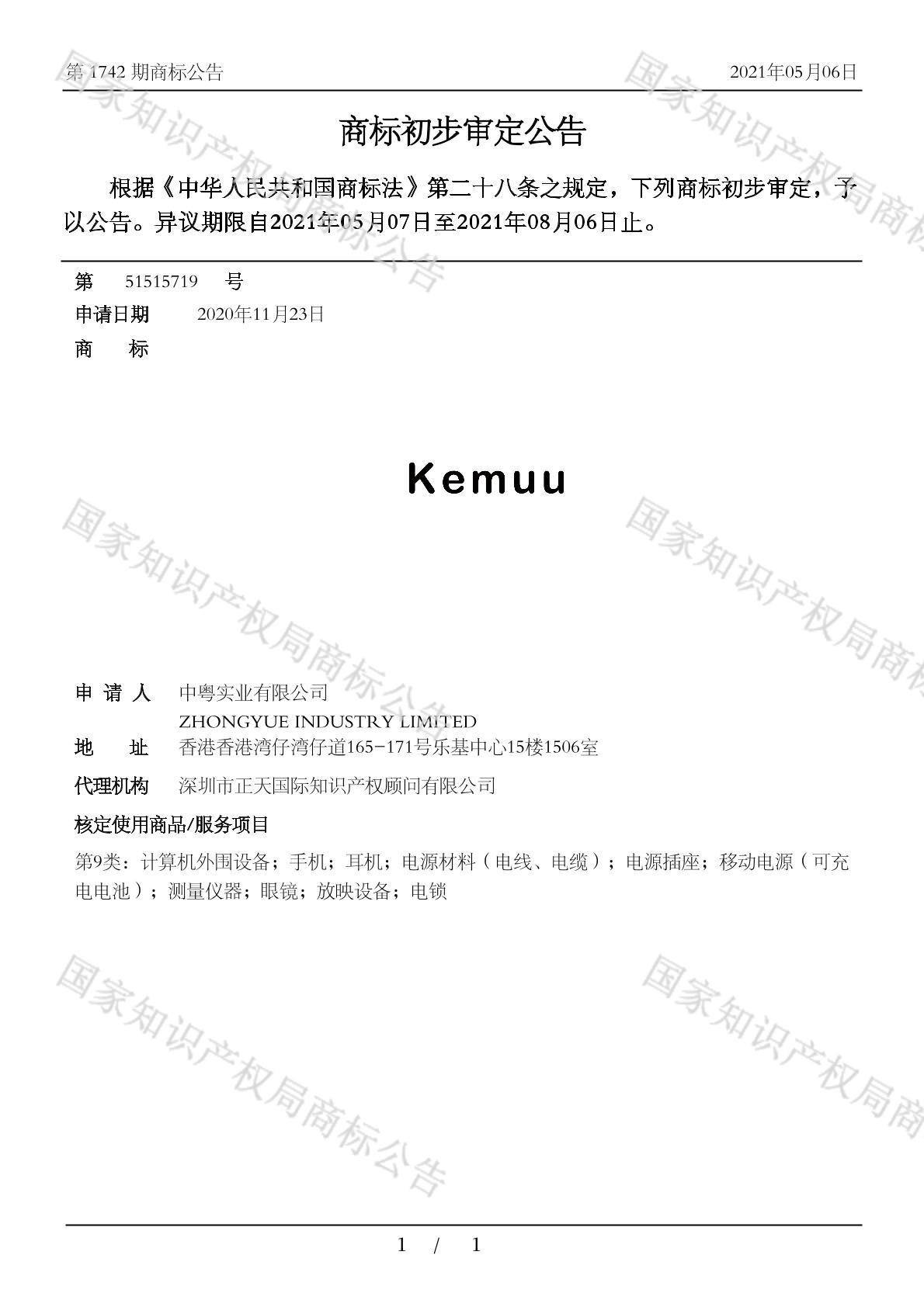 有效期限:2031-08-06 组合类型:中文注册号:51515719