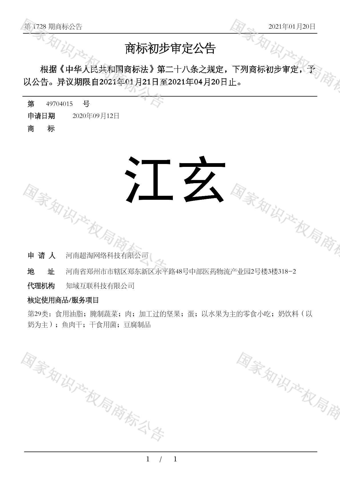 您当前位置:首页商标转让29类商标江玄