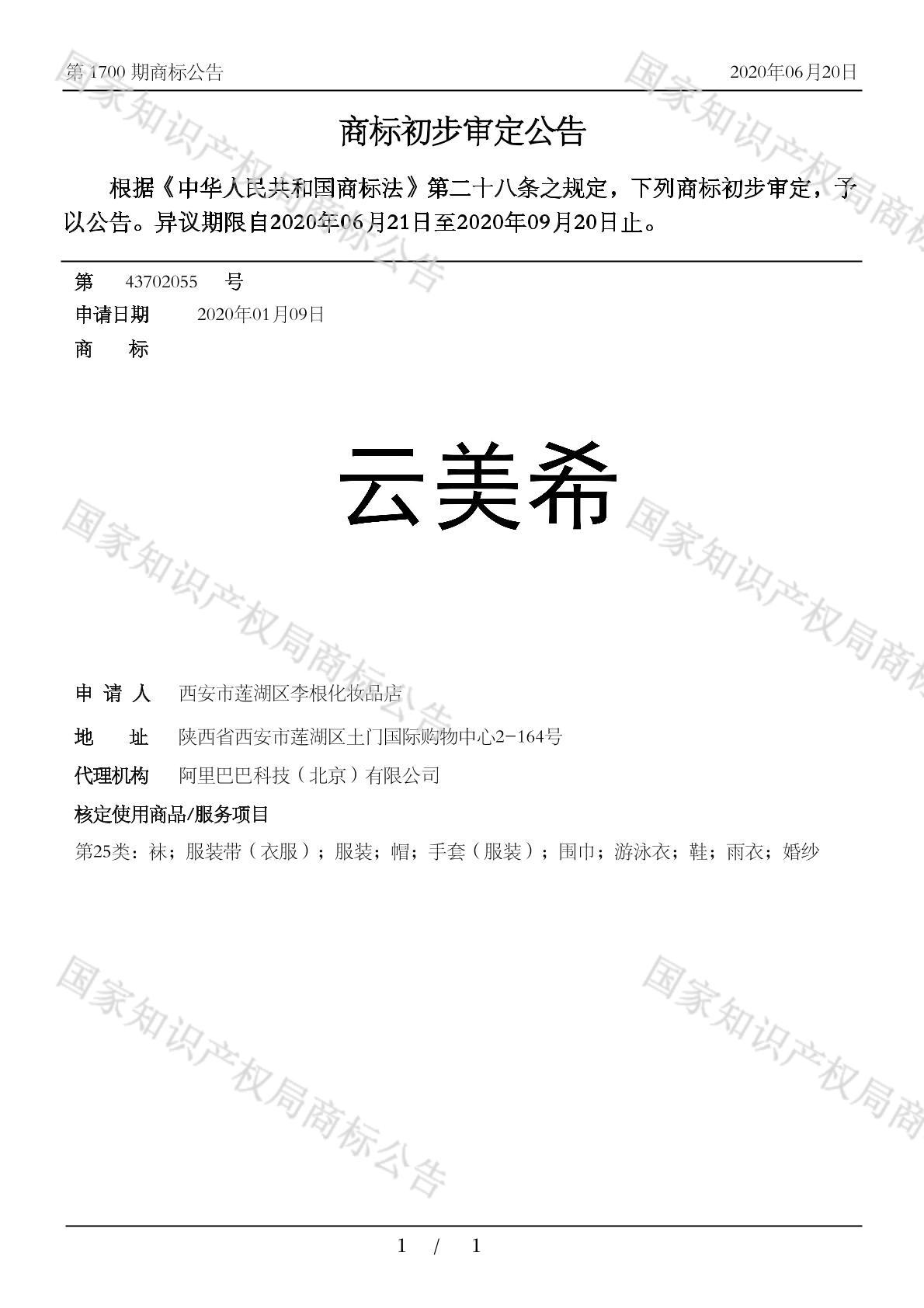 有效期限:2030-09-20 组合类型:中文注册号:43702055