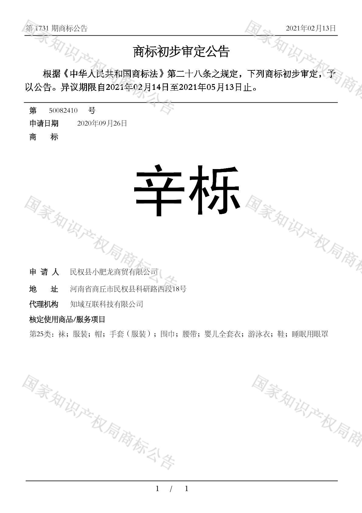 有效期限:2031-05-13 组合类型:中文注册号:50082410