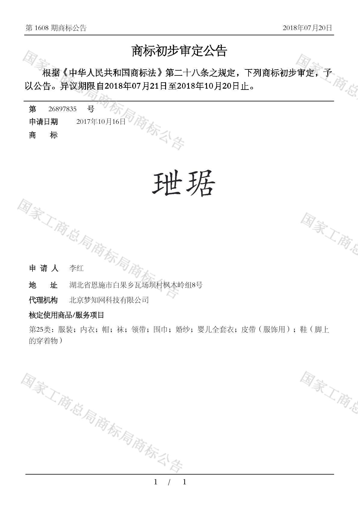有效期限:2028-10-20 组合类型:中文注册号:26897835