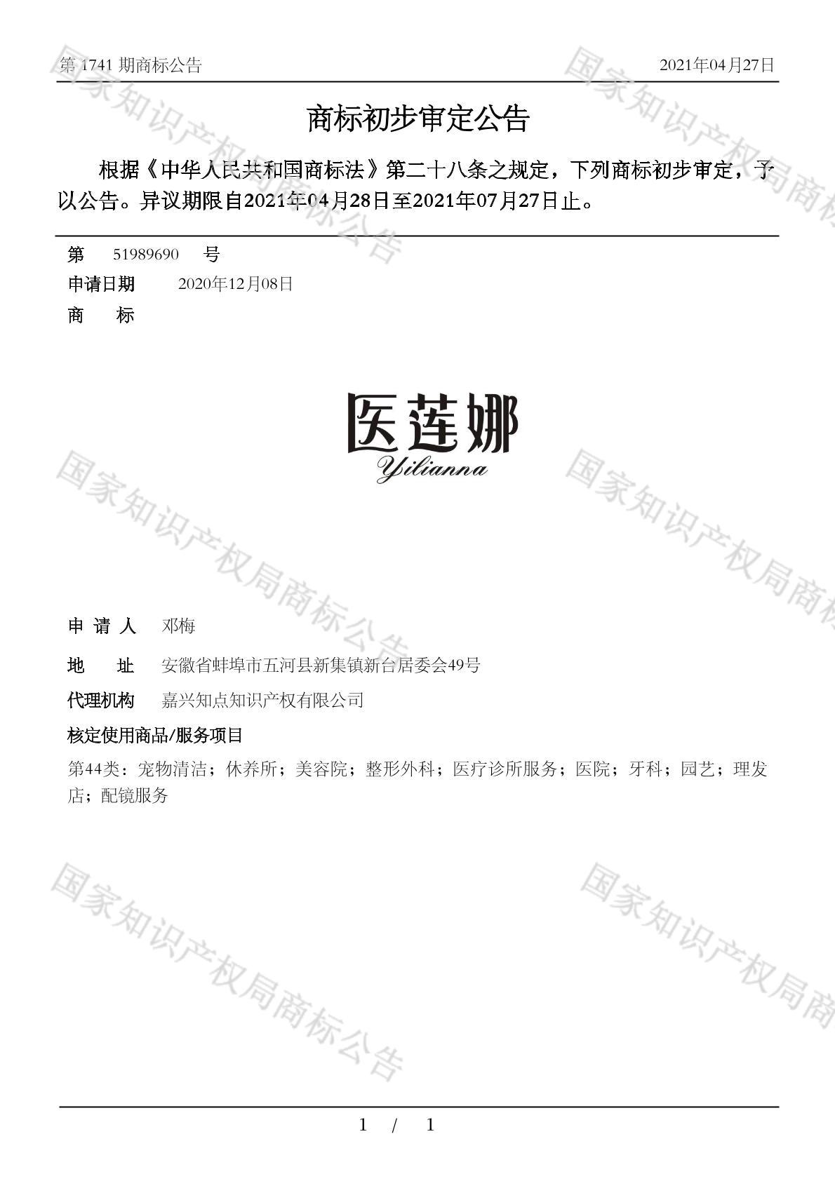 有效期限:2031-07-27 组合类型:中文注册号:51989690