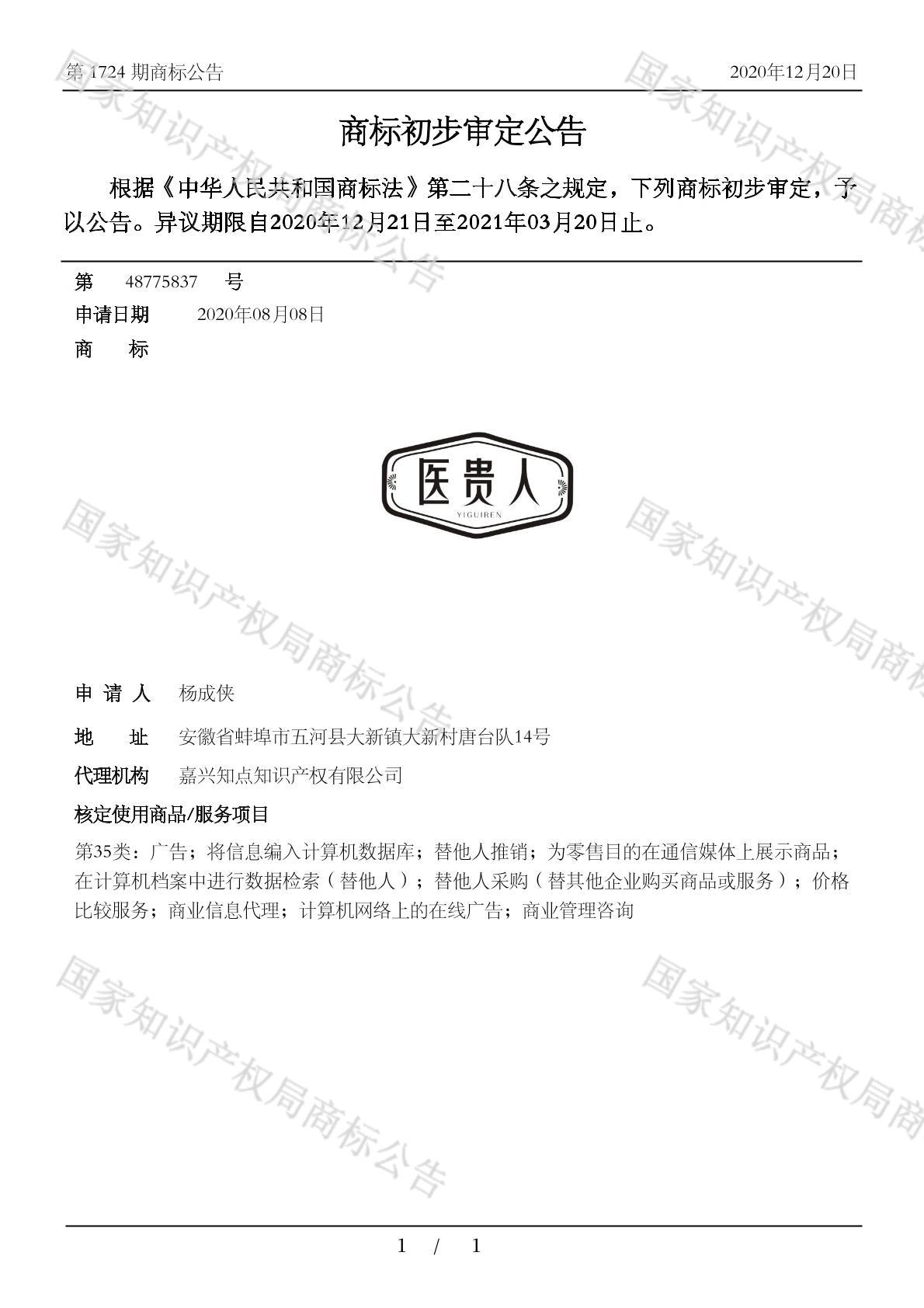 有效期限:2031-03-20 组合类型:中文注册号:48775837