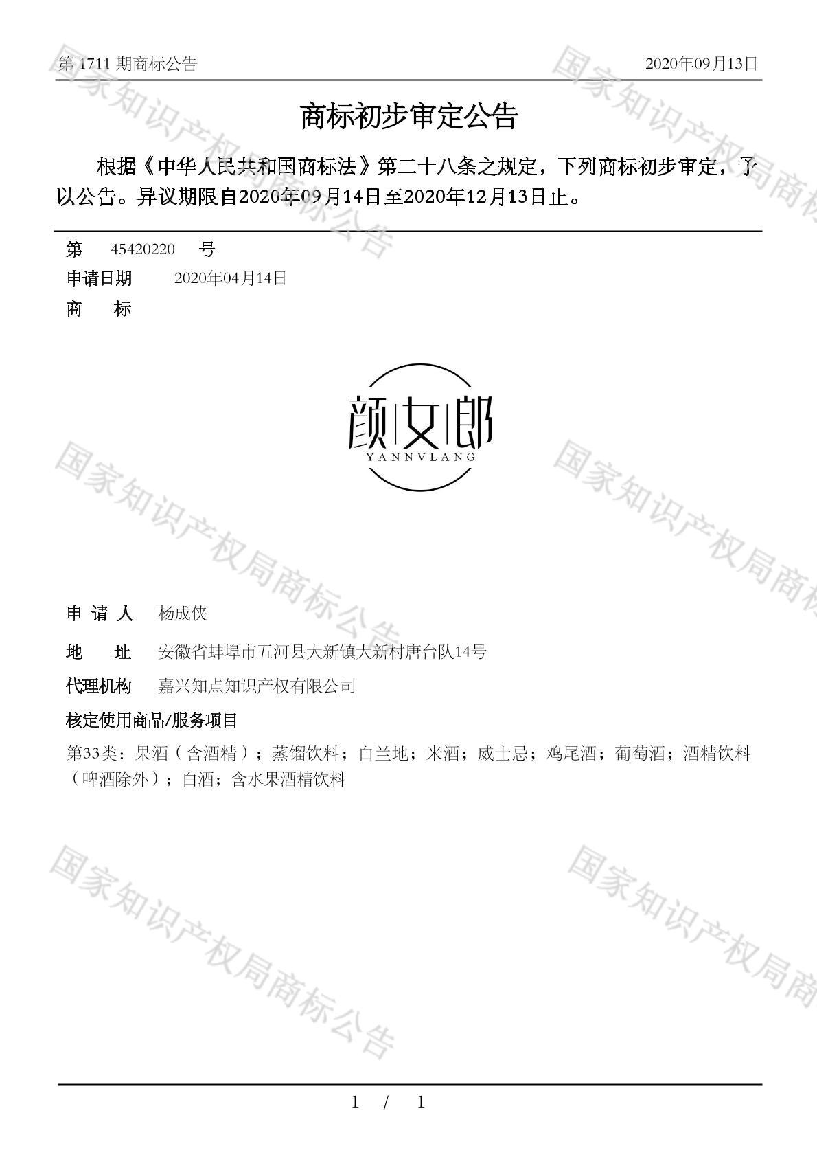 有效期限:2030-12-13 组合类型:中文注册号:45420220
