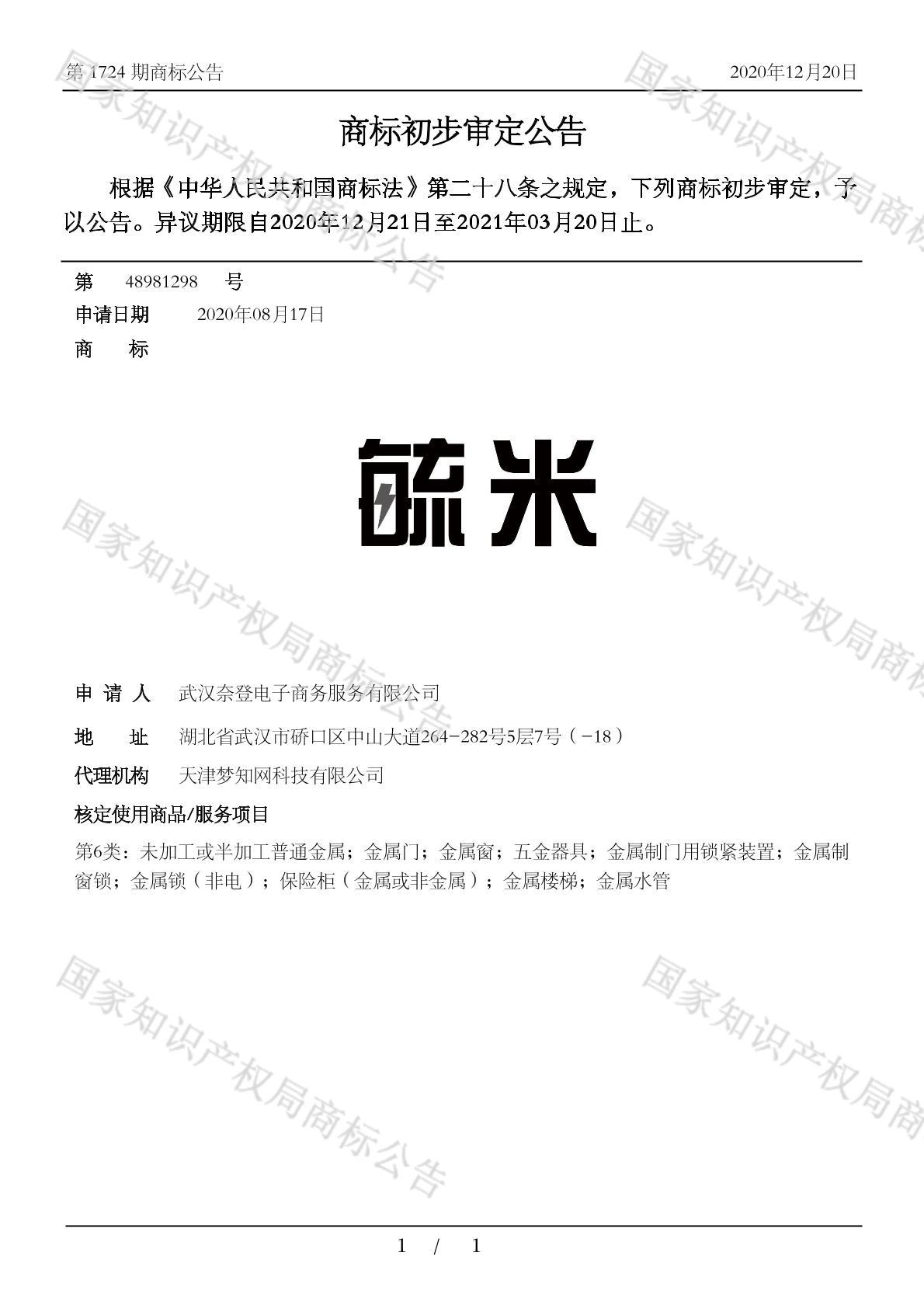 有效期限:2031-03-20 组合类型:中文注册号:48981298